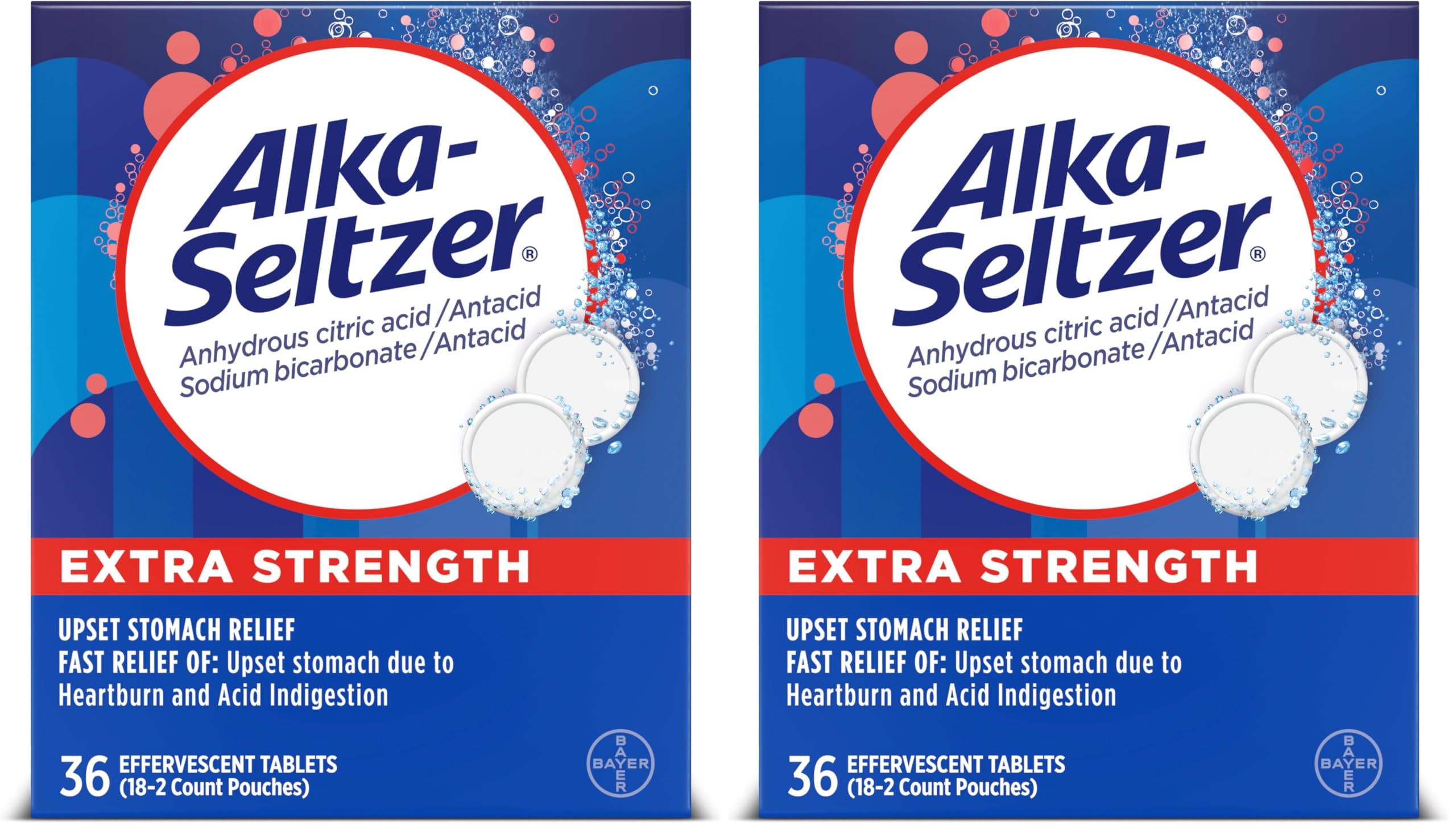 Alka-Seltzer Extra Strength Heartburn Relief Effervescent Antacid Tablets Fast Indigestion Relief 36Ct (Pack of 2)