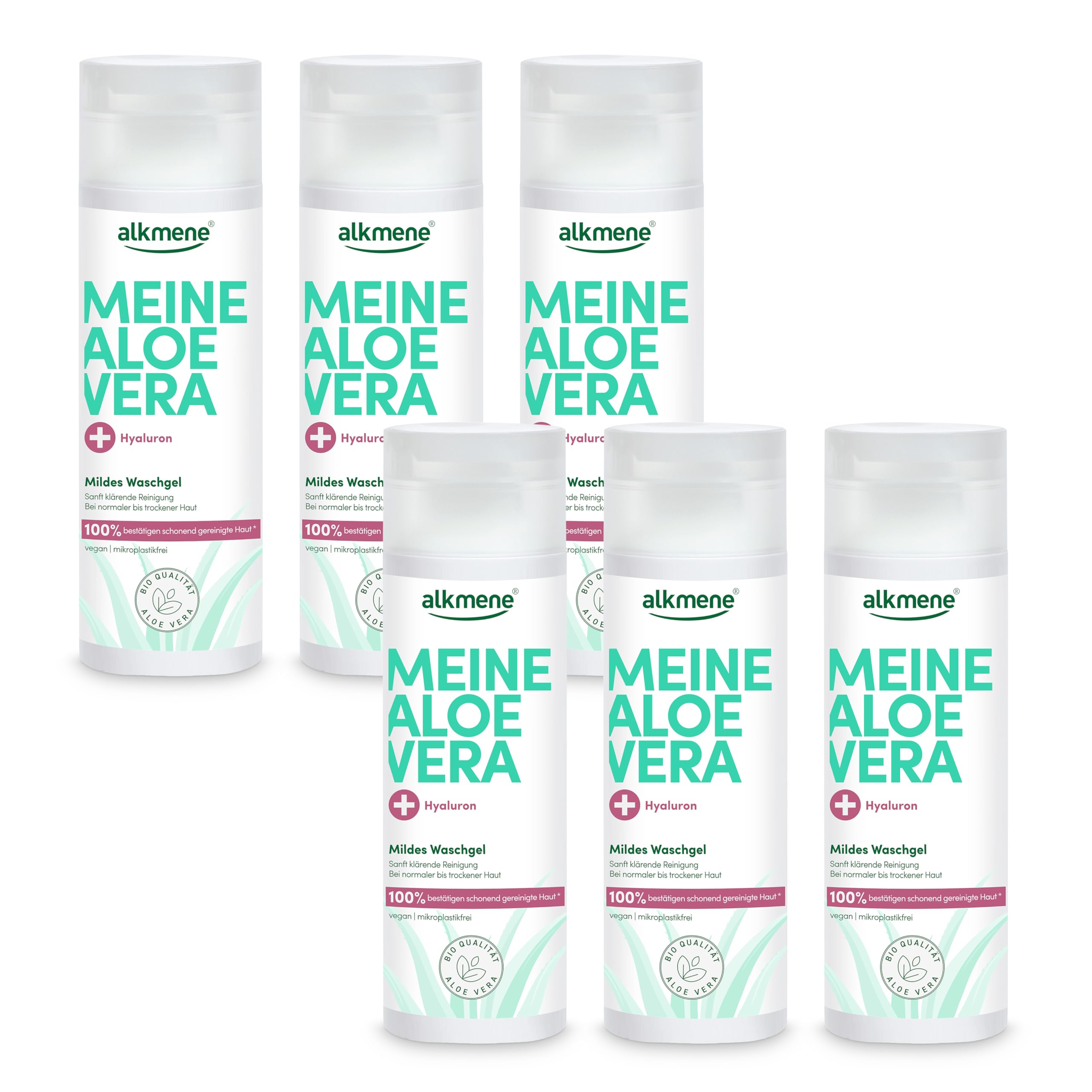 Contents: 6 x 200 ml Alkmene Gentle Cleansing Gel with Aloe Vera and Hyaluronic Acid – dermatologically confirmed absorbability – Made in Germany. Hyaluronic acid can bind 1000 times its own weight to water – this property helps to intensely hydrate the skin, making it firmer and minimizing the appearance of fine lines after drying. Aloe vera from controlled organic farming: is quickly absorbed by the skin, leaving a fresh, non-greasy feeling, retains moisture, and ensures long-lasting hydration. Proven effectiveness – gently cleanses the skin (100 ) does not dry out the skin (90 ) refreshes the skin (95 ) – gentle facial cleansing for noticeably cleansed skin and a radiantly fresh complexion. Facial cleansing gel: the gentle cleansing formula with a unique combination of active aloe and hyaluronic acid deeply cleanses the skin and optimally prepares it for further care.