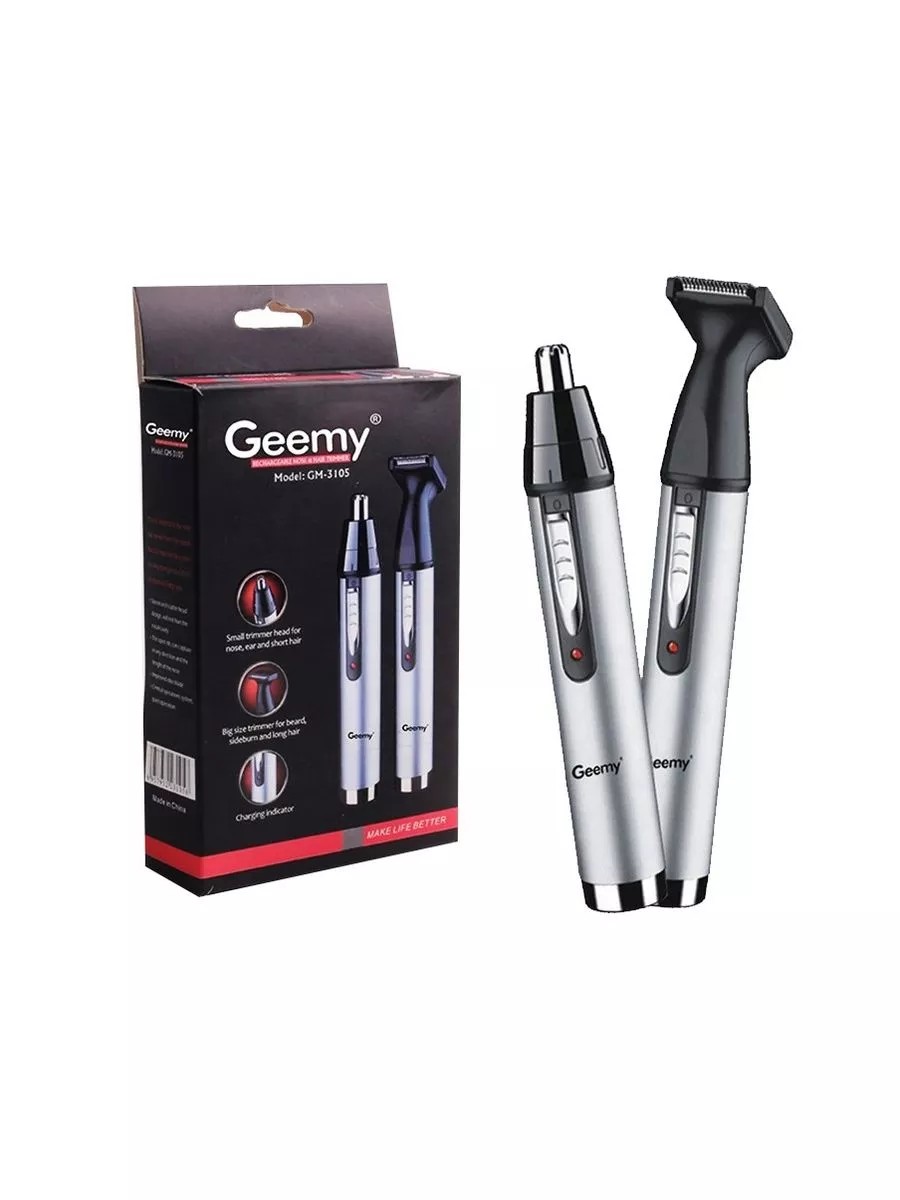Триммер мужской и женский универсальный 2 в 1 Geemy GM-3105. Это аккумуляторный многофункциональный мультитриммер для профессионального удаления волос из носа и ушей для ухода за лицом и телом в домашних условиях. При смене насадки электробритва используется как окантовочная машинка триммер для бороды и усов, для окантовки, для подравнивания висков и бакенбард, может применяться для интимной депиляции. Лезвия электрической бритвы выполнены из высококачественно стали, легко очищаются специальной щеточкой. Безопасность хранения обеспечивает надежный колпачок. Кроме того, заряд аккумулятора гарантирует работу машинки для стрижки в течение 60 минут, что делает ее незаменимой в поездках и путешествиях.