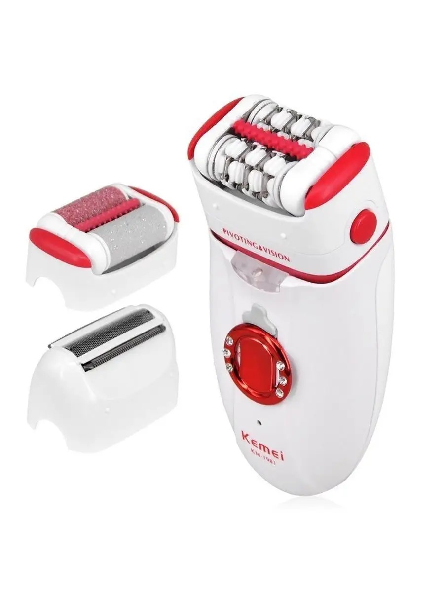 The KEMEI KM 1981 3-in-1 women's epilator has three attachments: a main attachment for high-quality hair removal, a double-bladed razor, and a pumice stone attachment for removing calluses and thinning. This bikini epilator replaces three separate devices. The razor with double-bladed steel blades and a protective foil allows you to treat even the most delicate intimate areas without irritation or pain. The pumice stone gently and quickly removes rough skin, leaving feet perfectly smooth. The rotating roller head is gentle, eliminating the need to steam the skin before use. This is an indispensable tool for any woman who wants to always look flawless. Using an electric epilator has many advantages, including: Its versatility – the epilator can be used on any area of the body, including legs, bikini area, or underarms. The flexible head of this electric epilator for women ensures smooth gliding. Easy to use at home. Even if you've never removed hair with an epilator, it's easy. The effect is long-lasting. After the first treatment, skin stays smooth for about two weeks, and the smoothness lasts longer after each repeat treatment. New hairs grow back weak and fine, making them increasingly easier to remove.