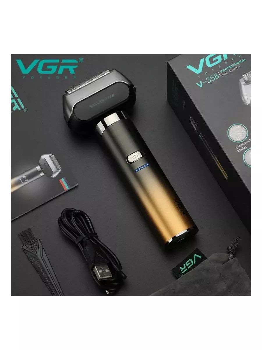 Электробритва VGR V-358 - это надежный и мощный инструмент для бритья, который позволяет получить идеально гладкий результат за короткое время. Он подходит для использования как в домашних условиях, так и в профессиональных. Одной из главных особенностей электробритвы VGR 358 является ее высокая скорость вращения лезвий с плавающей титановой сеткой. Благодаря мощному двигателю, который развивает скорость вращения до 7000 оборотов в минуту, он обеспечивает быстрое и гладкое бритье без раздражения кожи. Электробритва VGR V-358 оснащен лезвиями из высококачественной нержавеющей стали, которые обеспечивают точное и бережное бритье. Один из главных преимуществ VGR V-358 - его эргономичный металлический дизайн. Еще он очень легкий и компактный, что позволяет использовать его в любых условиях, а также продолжать бритье бороды или стрижку головы во время зарядки. Электробритва VGR V-358 оснащен индикатором заряда, который показывает, когда нужно зарядить аккумулятор. Кроме того, электробритва обладает стандартами IPX7 в степени защиты от влаги.