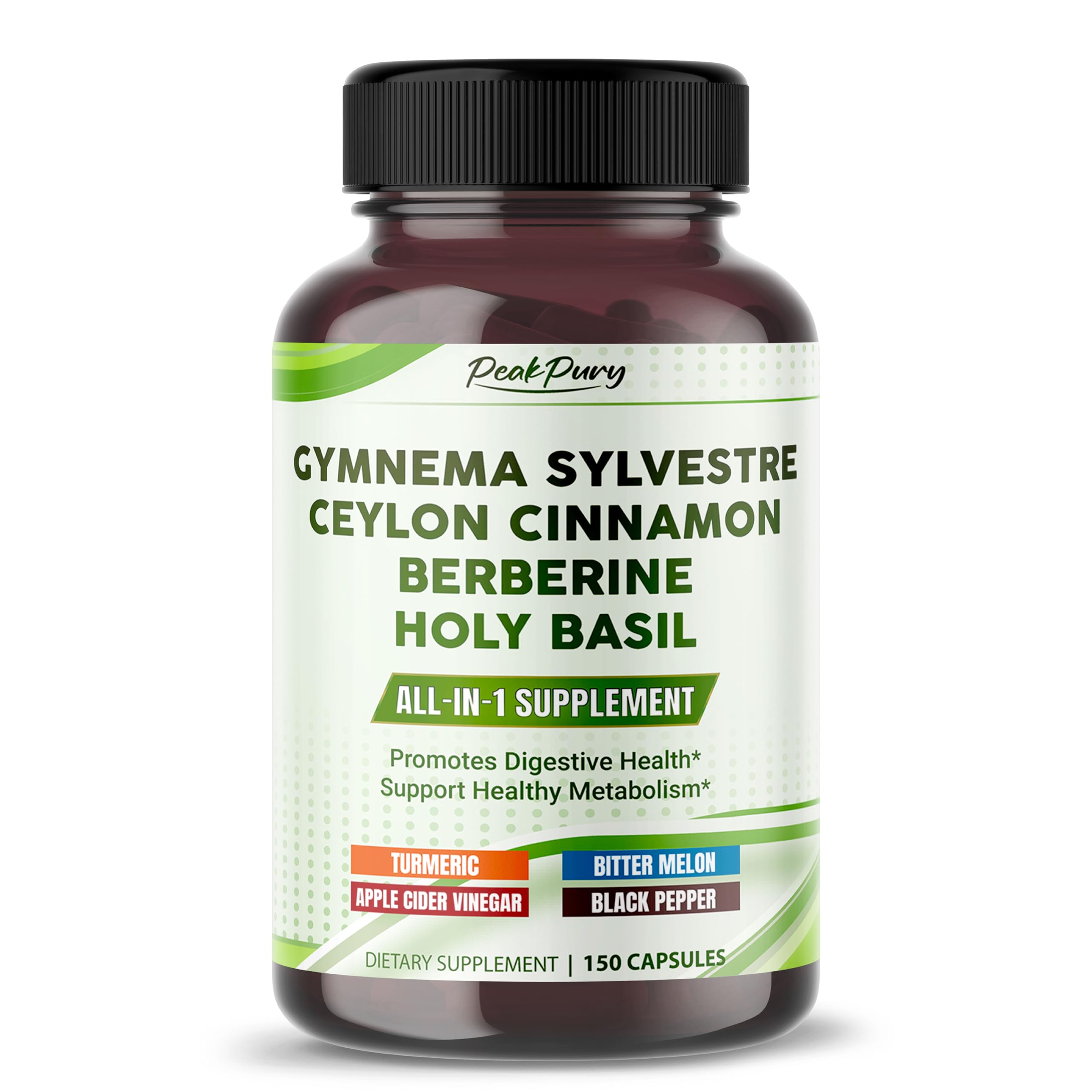Outstanding Quality: Made with premium ingredients in a cGMP-compliant facility, this product undergoes rigorous third-party labs testing to ensure ingredient quality. Comprehensive Formula: This all-in-one supplement blends powerful natural ingredients such as Gymnema Sylvestre, Berberine, Ceylon Cinnamon, Holy Basil, Turmeric, and more into one convenient capsule. Enhanced Absorption with Black Pepper: The inclusion of Black Pepper helps enhance nutrient absorption, ensuring that the active ingredients are more effectively utilized by the body for maximum benefits. Digestive and Metabolism Support: This all-in-one supplement combines natural ingredients that work synergistically to promote digestive health and support a healthy metabolism. Maximize Value with More Capsules: Unlock exceptional value with PeakPury's premium Gymnema Sylvestre Supplement, offering 150 capsules per bottle, providing a 5-month supply to support your long-term wellness journey.