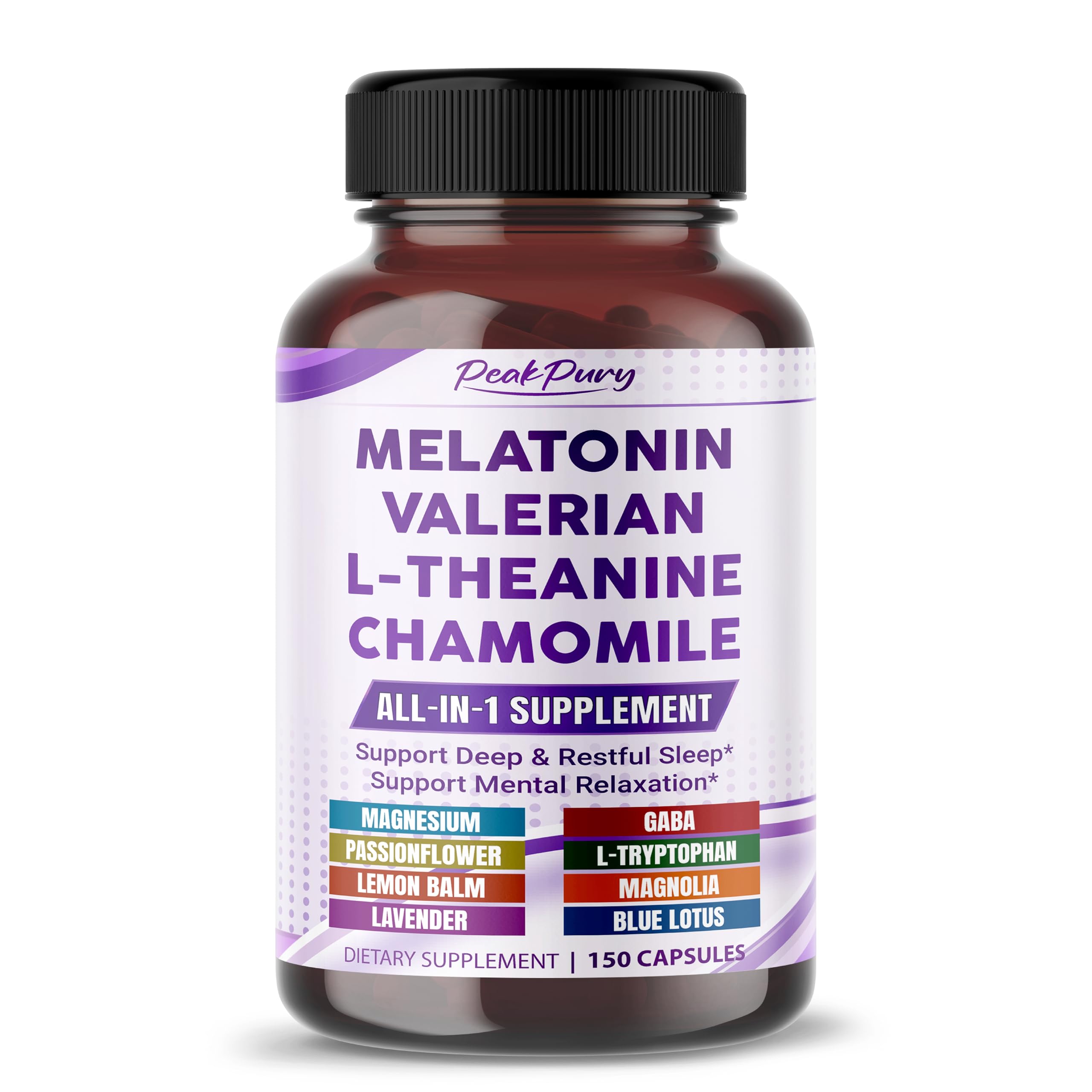 All-in-1 Melatonin Valerian L-Theanine & Chamomile Supplement Supports Restful Sleep & Mental Relaxation 150 Capsules 150 count (pack of 1)