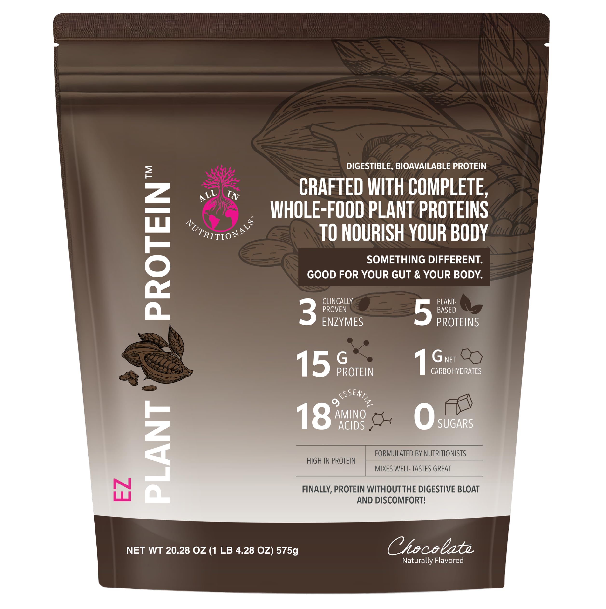 All In Nutritionals EZ Plant Protein Vegan Keto-Friendly Dairy-Free Soy-Free Gluten-Free in Chocolate Blend of Rice Peas Sacha Inchi and Pumpkin Seeds - NO Bloat - with Digestive Enzymes