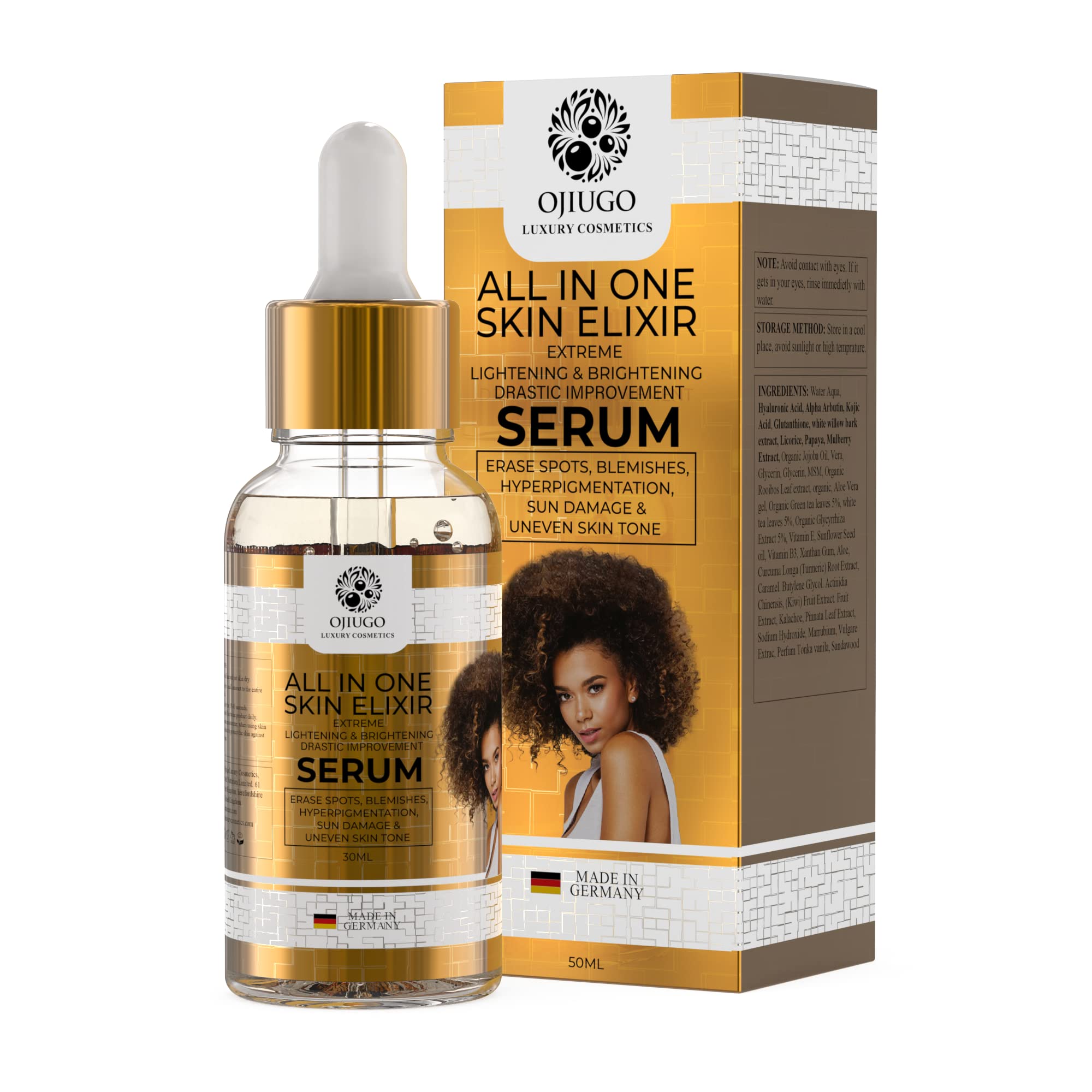 All In One Skin Elixir | Extreme Lightening & Brightening | Face Serum Erase Blemishes | Hyperpigmentation | Sun Damage & Uneven Skin tone | Pure Skin Perfection Gentle on the Skin