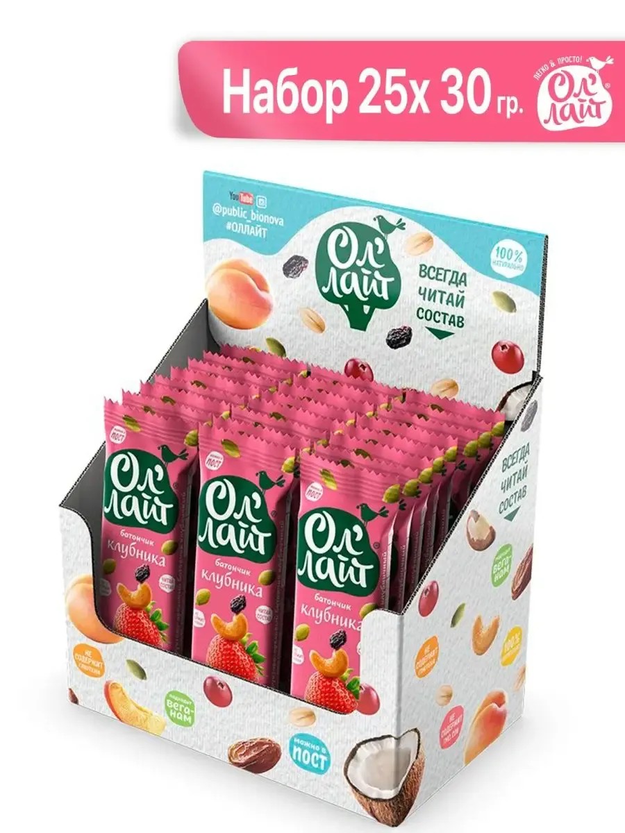 Ол'Лайт Фруктово-ореховые батончики клубника 25х30 гр