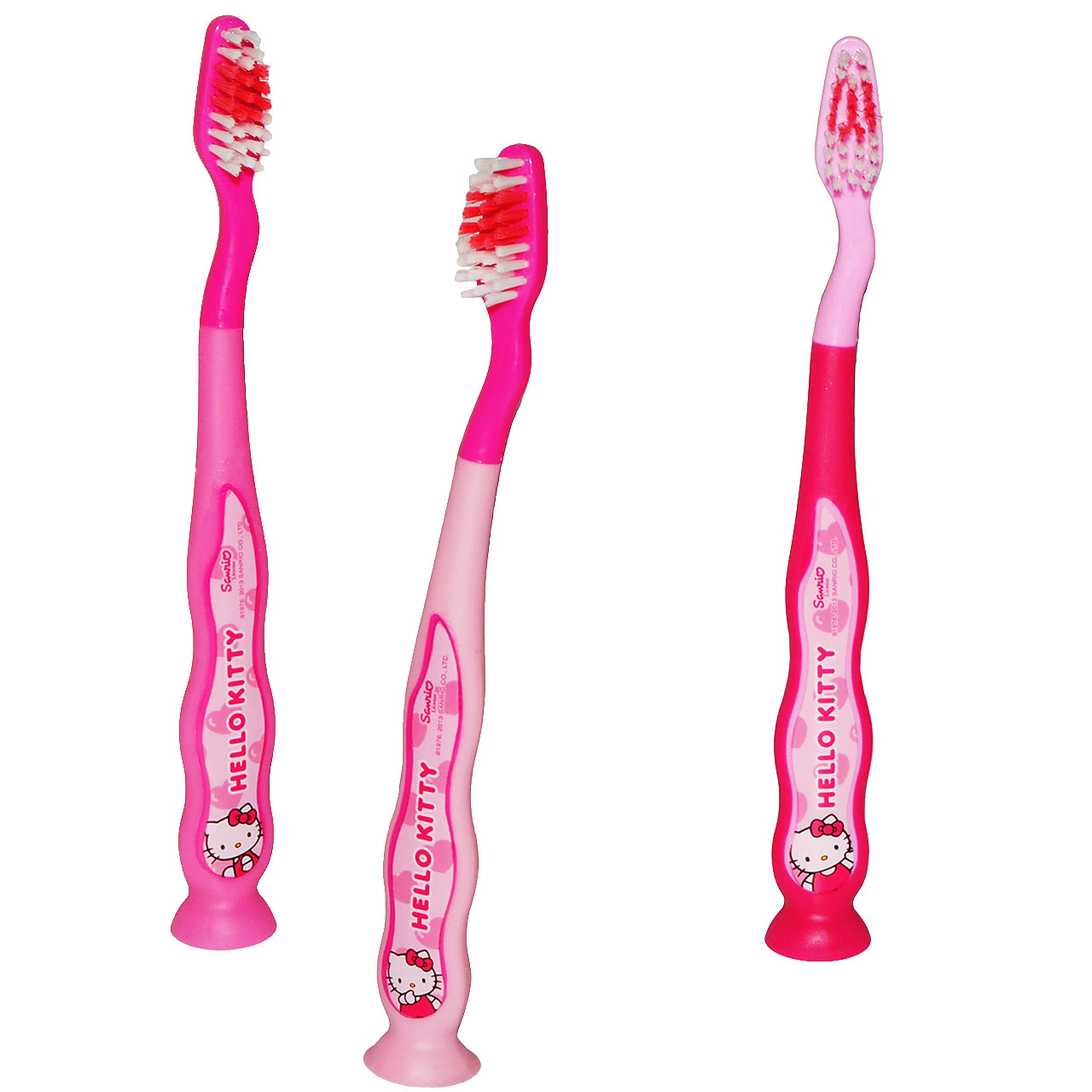 alles-meine.de GmbH 3 TLG. Zahnputzset - Hello Kitty - Zahnbürsten mit Saugnapf zum Hinstellen - Zahnbürstenset - Kinder Baby hochwertige Borsten - Babyzahnbürste Kinde. ohne NAMEN