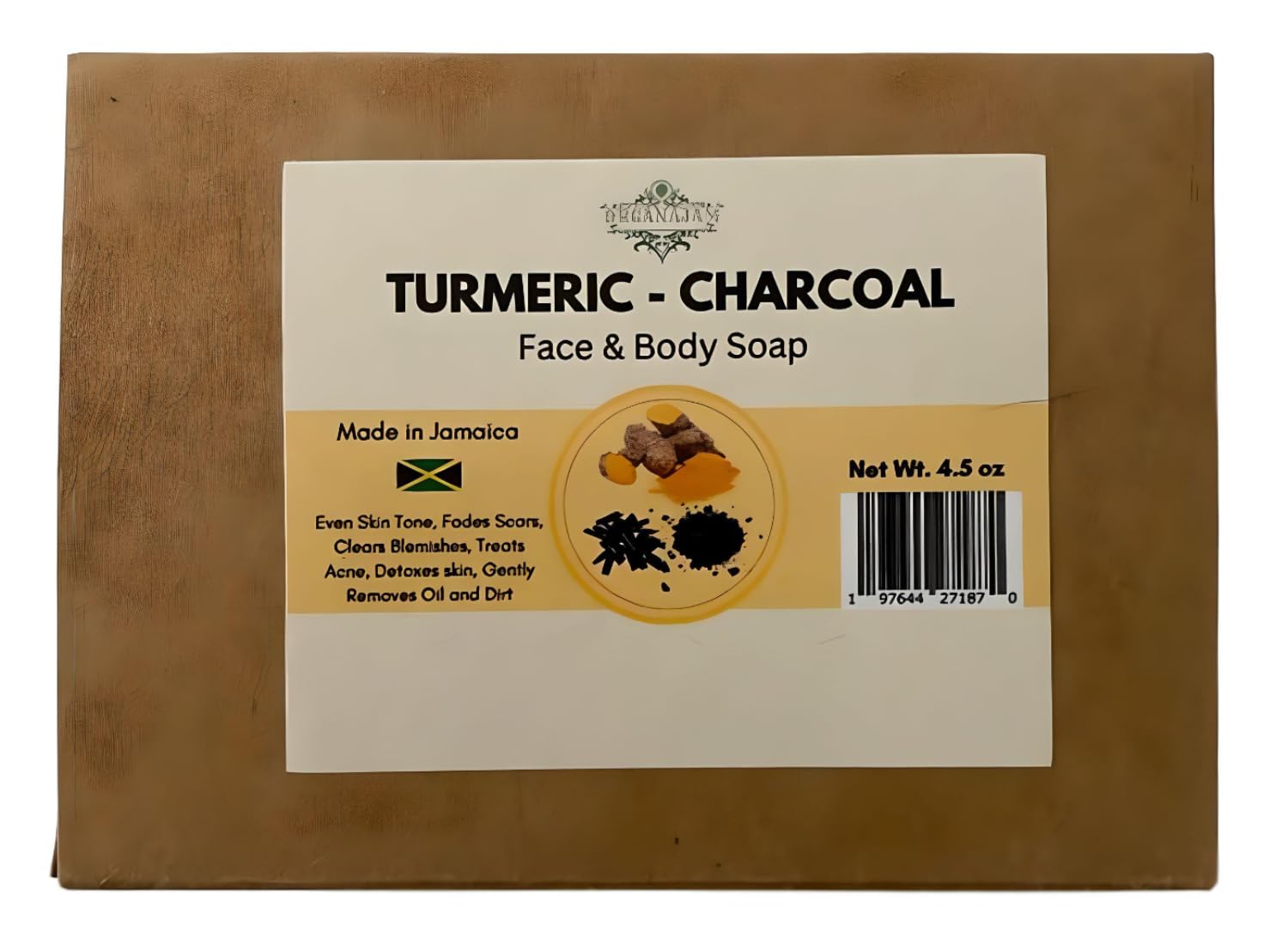 All Natural Turmeric Charcoal 100% Organic Cold Process Handmade Exfoliating Soap Bar for Men & Women, Made in Jamaica