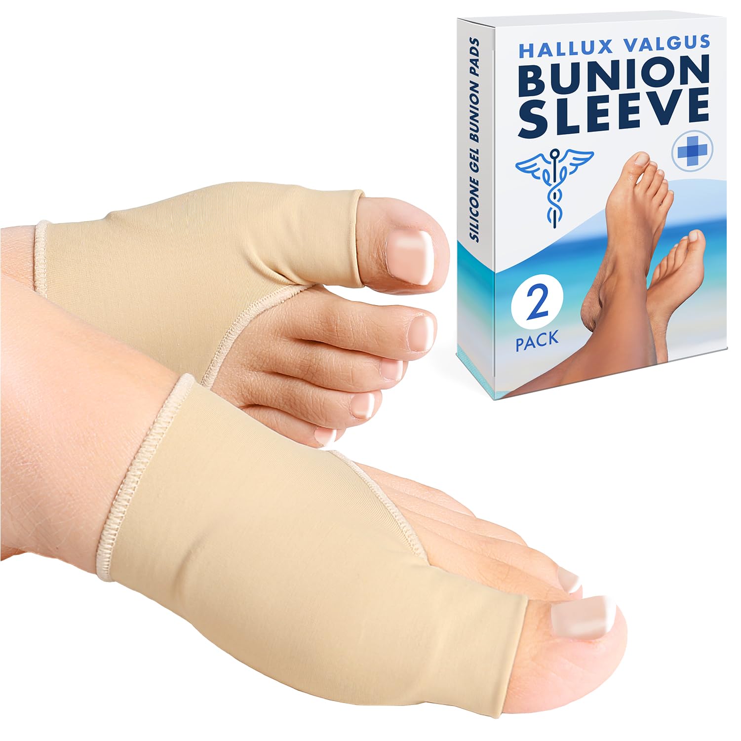 All Things Accessory Bunion Support Sleeve with Silicone Gel Bunion Pads 2 Pack Toe Protectors for Big Toe Bunion Pain Relief and Support One-Size S-M US 6-10