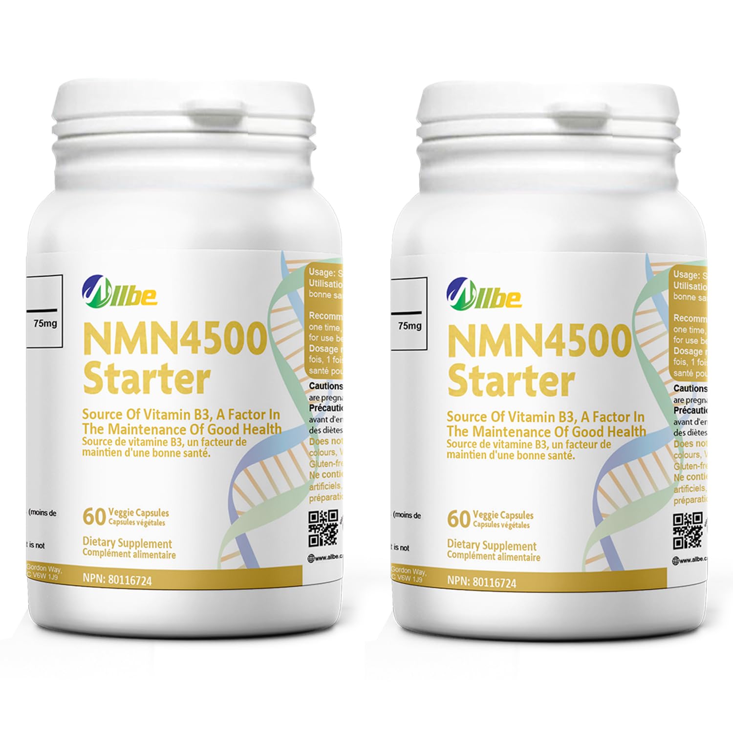 ALLBE NMN 4500 Starter Capsules 2 Packs of 60 Nicotinamide Mononucleotide 75 mg Servings NAD+ Booster Supplement for Cellular Energy Metabolism Immunity and Healthy Aging (1 Pack x 60 Capsules) 60 count (Pack of 2) Nmn 4500 (75mg)