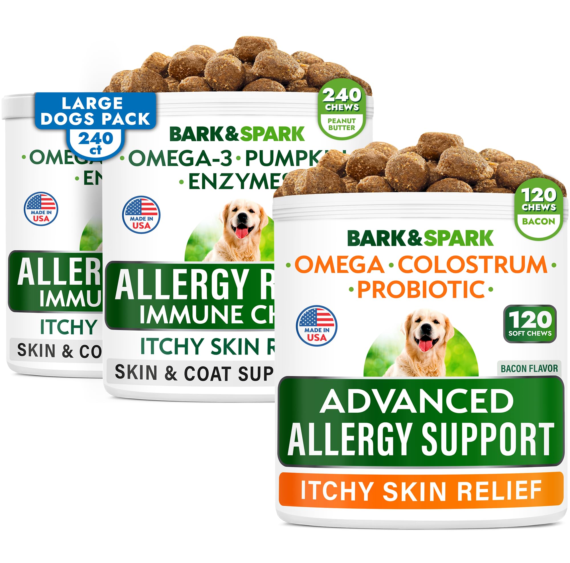 Allergy Relief + Advanced Allergy Bundle - Anti-Itch&Hot Spots + Itchy Skin Relief Pills - Omega 3 + Pumpkin+ Enzymes + Probiotics - Immune Supplement + Anti Itching Licking - 360 Chews - Made in USA