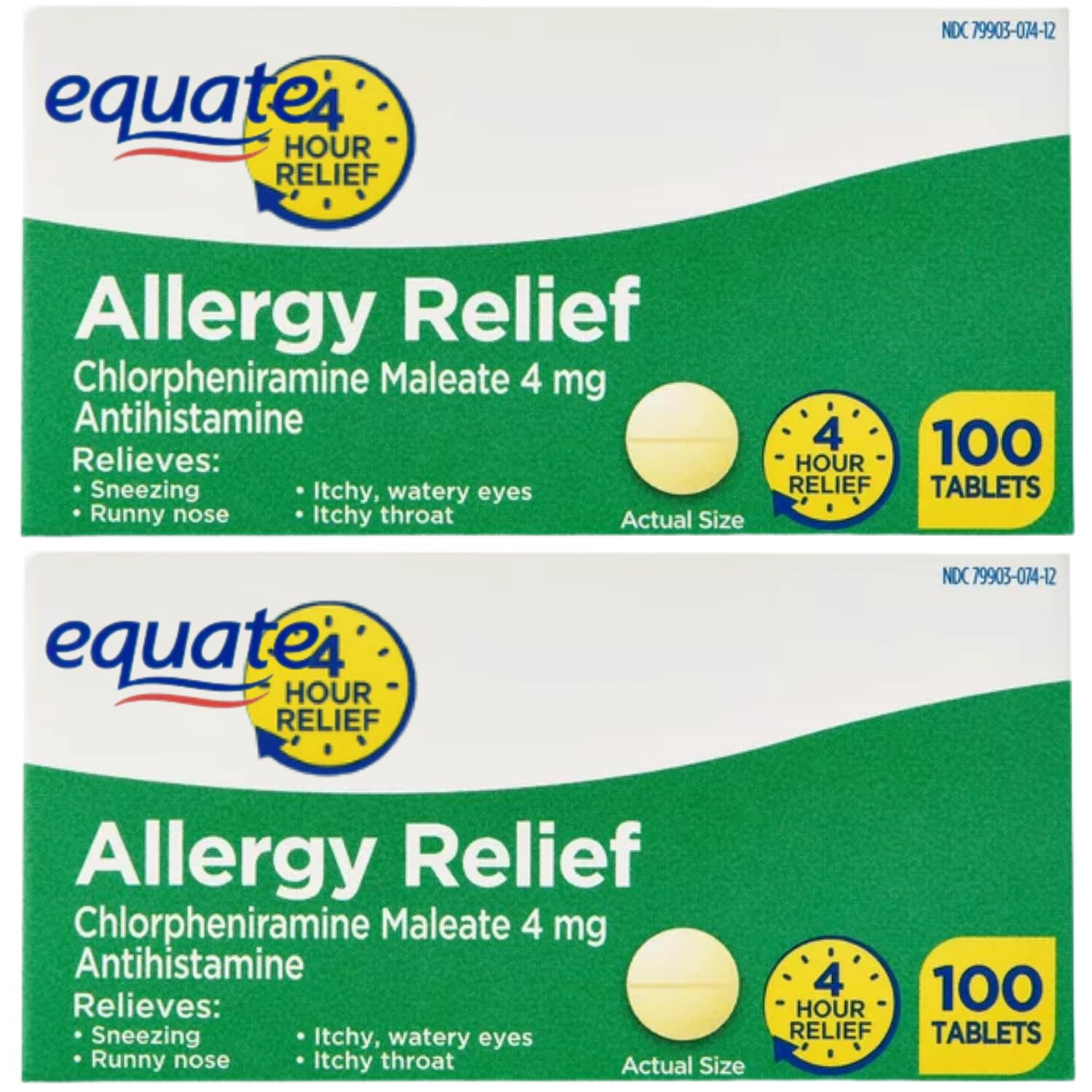 Allergy Relief Medicine Equat'e Chlorpheniramine Maleate 4 mg Antihistamine 100 Count (Pack of 2)