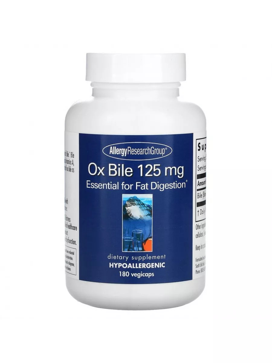 Allergy Research Group Ox Bile, бычья желчь, 125 мг, 180 растительных капсул