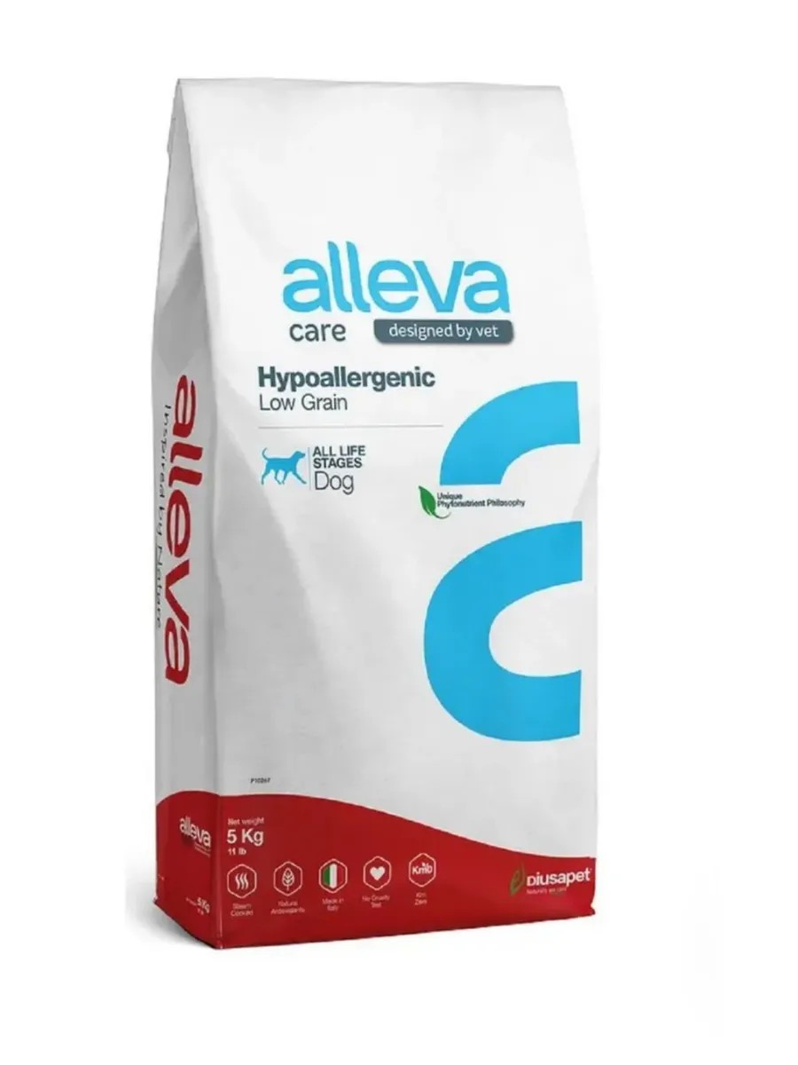 Alleva Care Гипоаллердженик беззерновой сухой диетический корм собакам для снижения пищевой непереносимости к определенным ингредиентам или питательным веществам. Рекомендуется также в качестве поддержки трофической функции кожи и ее производных в случае дерматоза и чрезмерного выпадения шерсти.