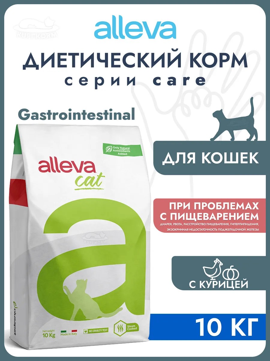 Alleva Корм Care Gastrointestinal Low Fat для кошек 10кг