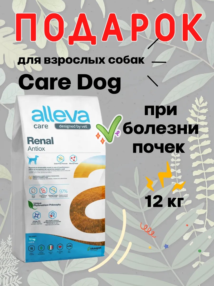 | Полное наименование товара | Сухой диетический корм 12кг Alleva Care Dog Adult Renal Antiox для взрослых собак при почечной недостаточности |