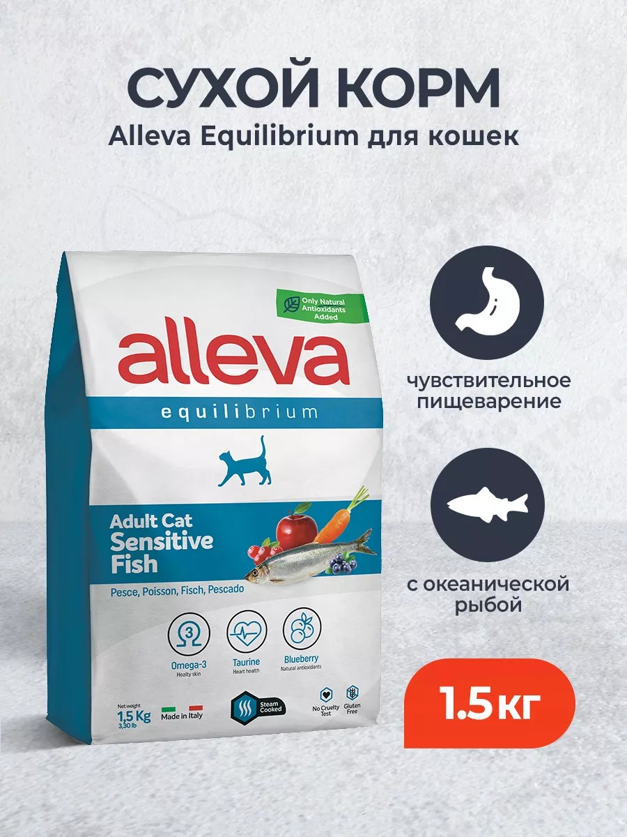 | Полное наименование товара | Alleva Equilibrium Adult Cat Sensitive сухой корм для взрослых кошек с чувствительным пищеварением рыба - 1.5 кг |