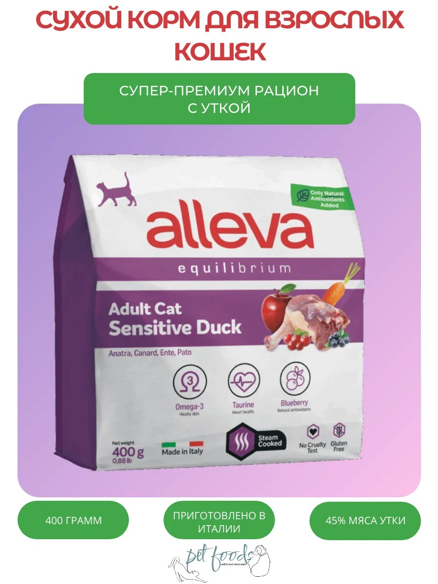 | Полное наименование товара | Сухой корм Alleva Equilibrium Adult Cat Sensitive Duck для взрослых кошек |
