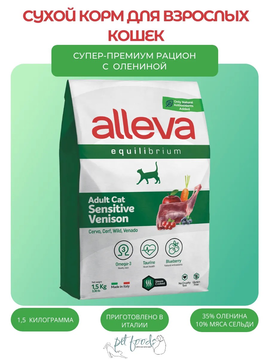 | Полное наименование товара | Сухой корм Alleva Equilibrium Adult Cat Sensitive Venison для взрослых кошек |