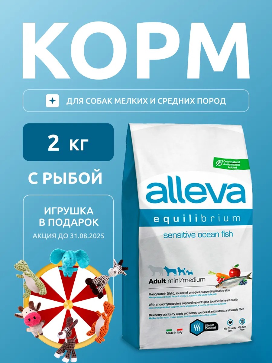 Alleva Equilibrium Sensitive Ocean Fish Adult Mini/Medium — это сухой корм супер-премиум класса для взрослых собак мелких и средних пород.