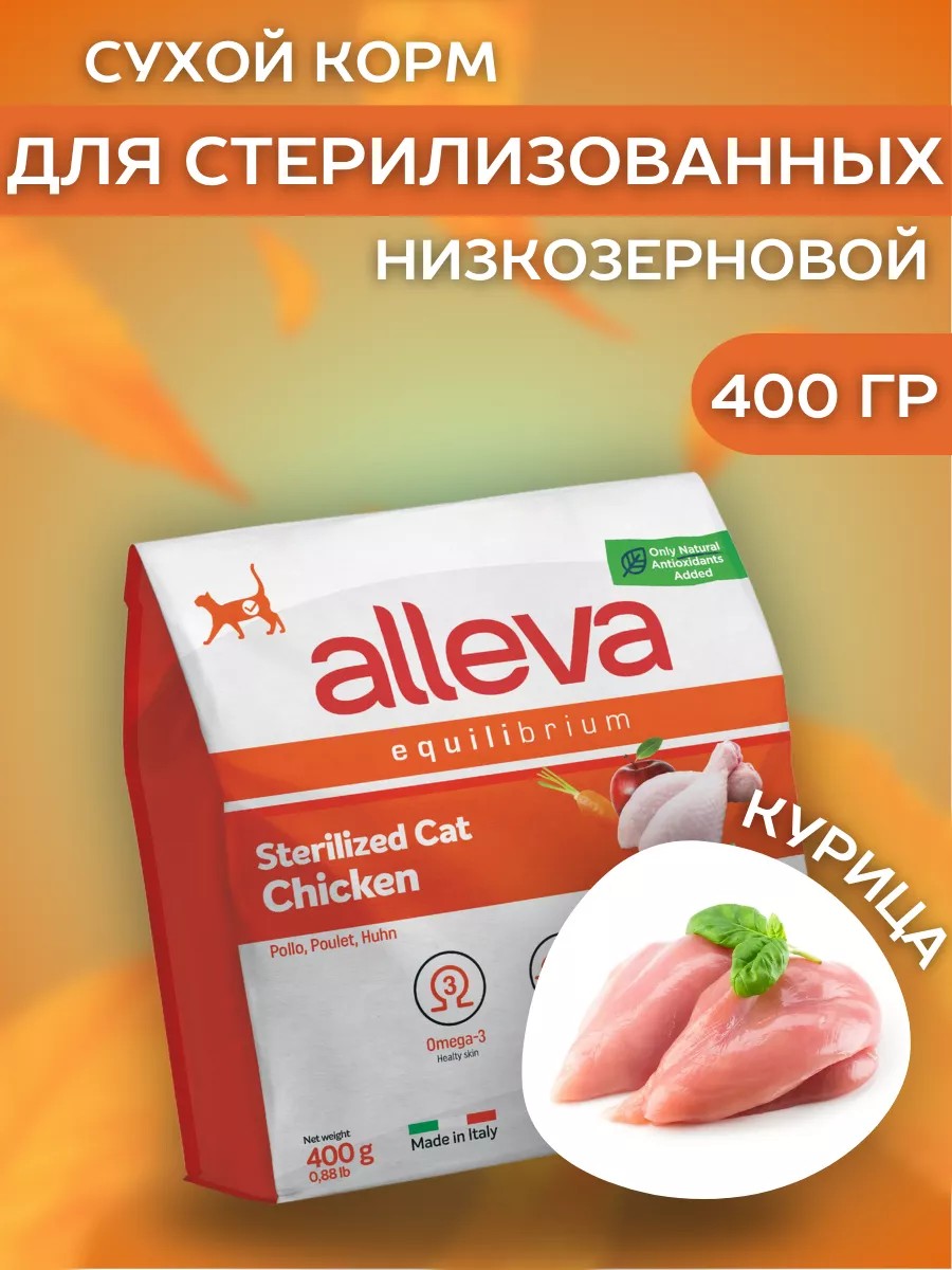 Alleva Сухой низкозерновой корм Sterilise для кошек курица 400 г