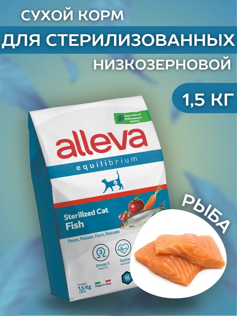 Alleva Сухой низкозерновой корм Sterilise для кошек с рыбой 1,5 кг