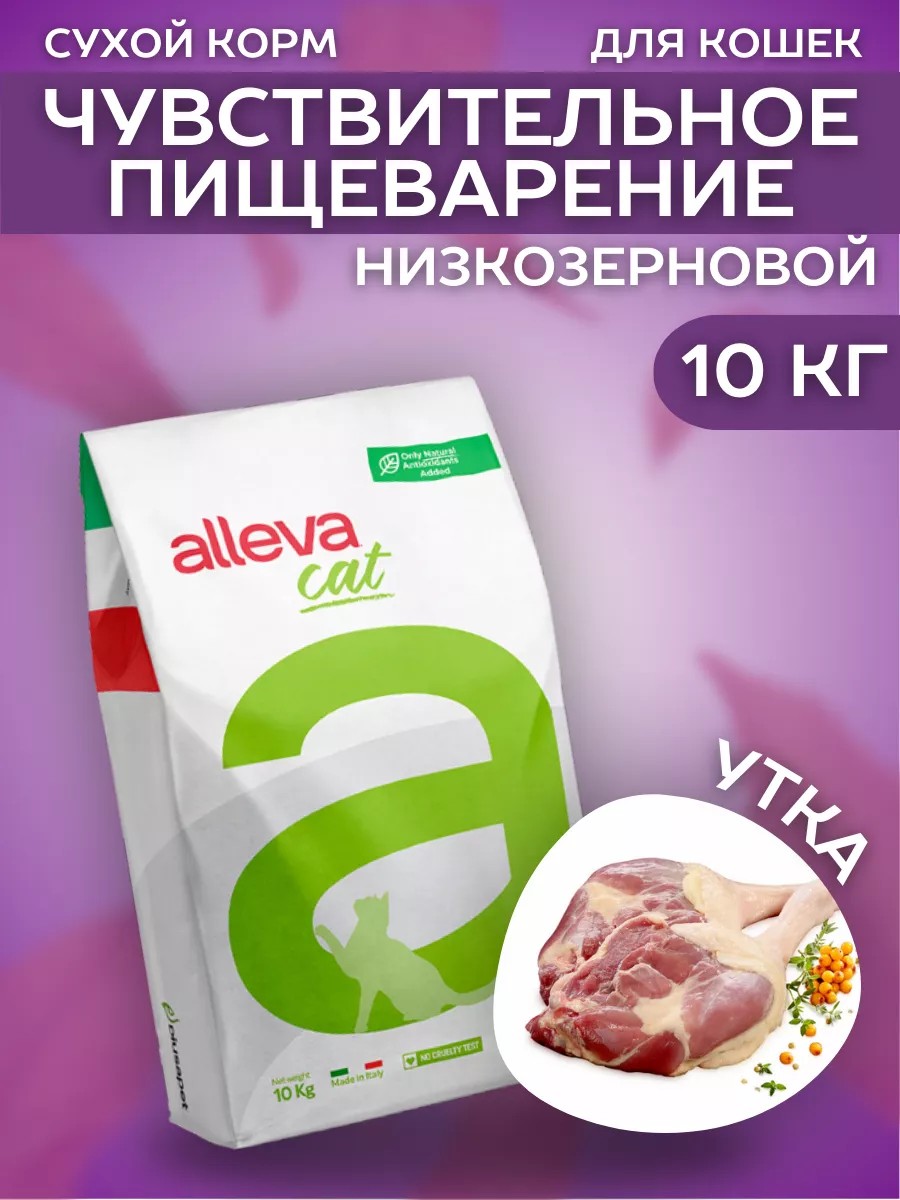 Alleva Сухой низкозерновой корм Sensitive для кошек с уткой 10 кг