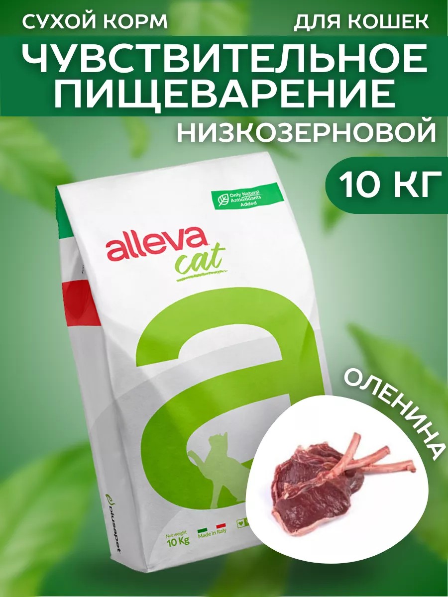 Alleva Сухой низкозерновой корм Sensitive для кошек оленина 10 кг