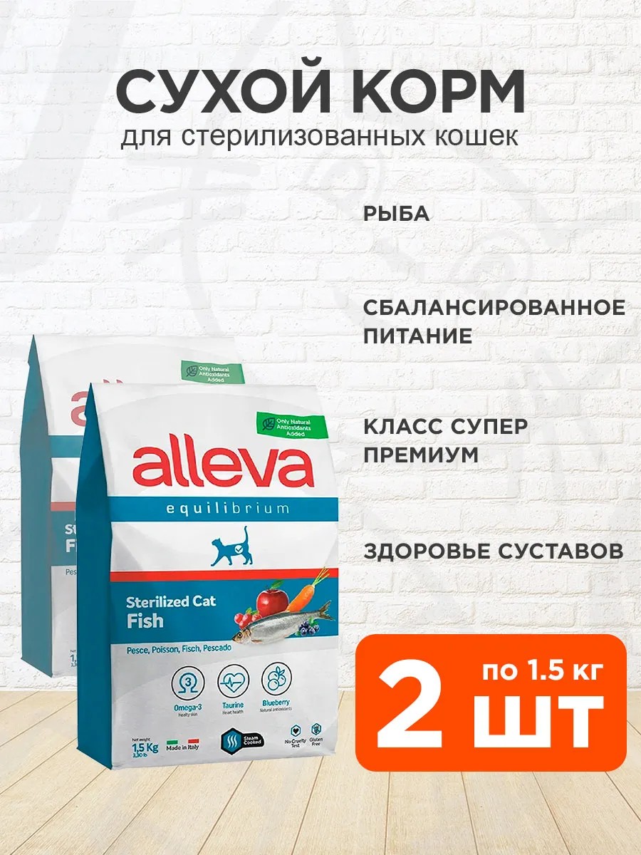 Alleva Корм Equilibrium для стерилизованных кошек рыба 1,5 кг 2 шт