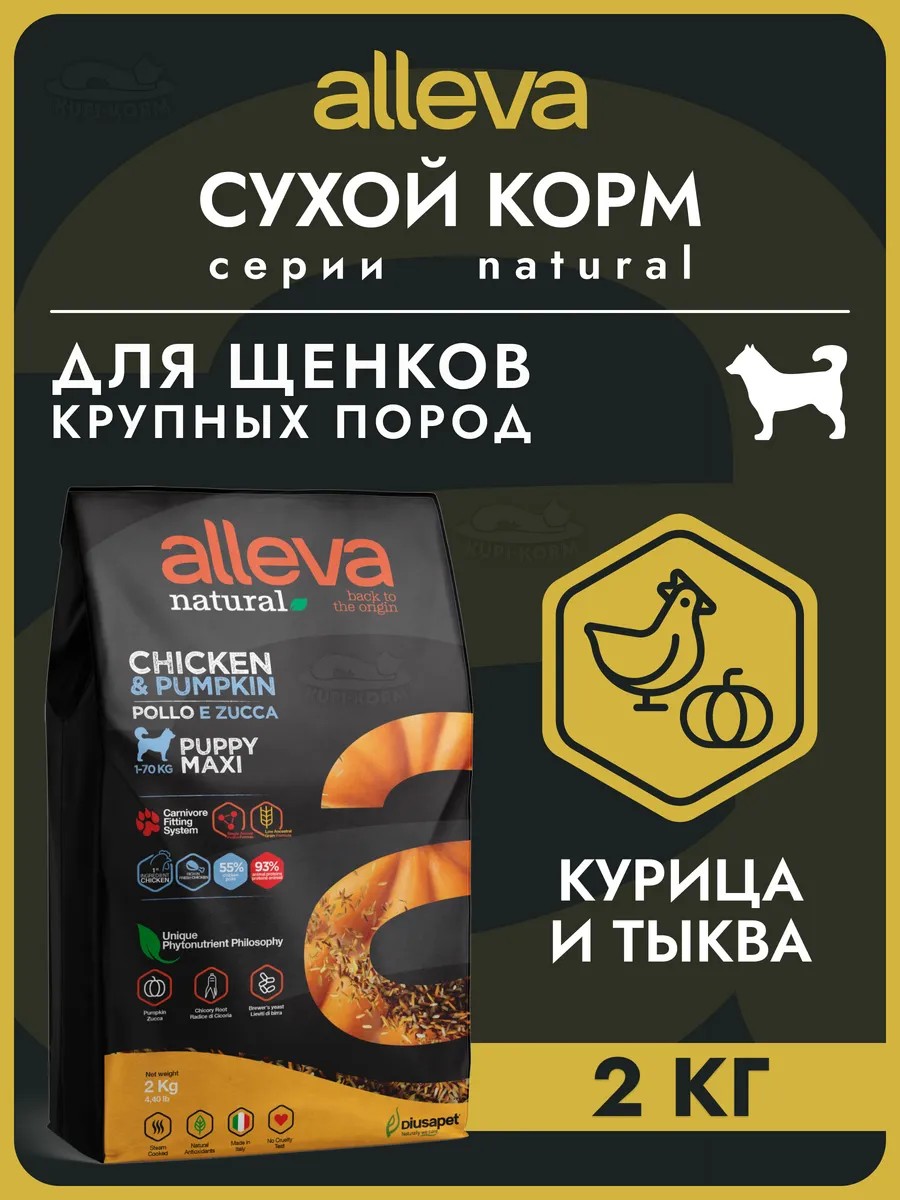 Alleva Корм Natural для щенков макси курица с тыквой 2 кг