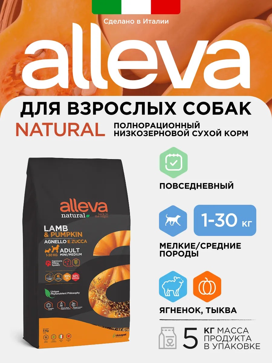 ALLEVA NATURAL ADULT LAMB AND PUMPKIN MINI/MEDIUM / Полнорационный сухой корм Аллева Натурал с ягненком и тыквой для взрослых собак мелких и средних пород.