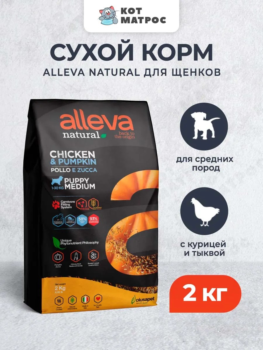 | Полное наименование товара | Alleva Natural Puppy Chicken and Pumpkin Medium сухой корм для щенков с курицей и тыквой - 2 кг |