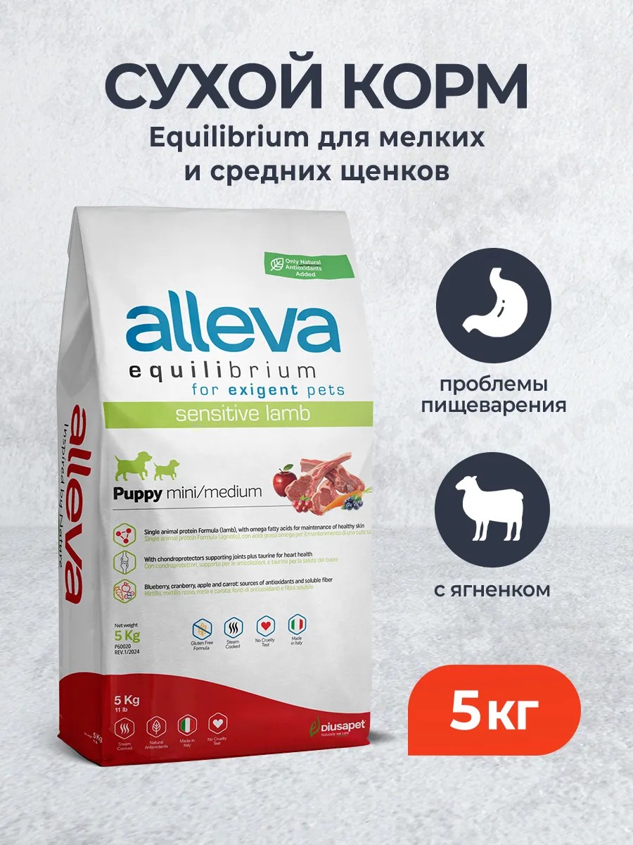 | Полное наименование товара | Alleva Equilibrium Sensitive Lamb Puppy Mini/Medium сухой корм для щенков мелких и средних пород ягненок - 5 кг |