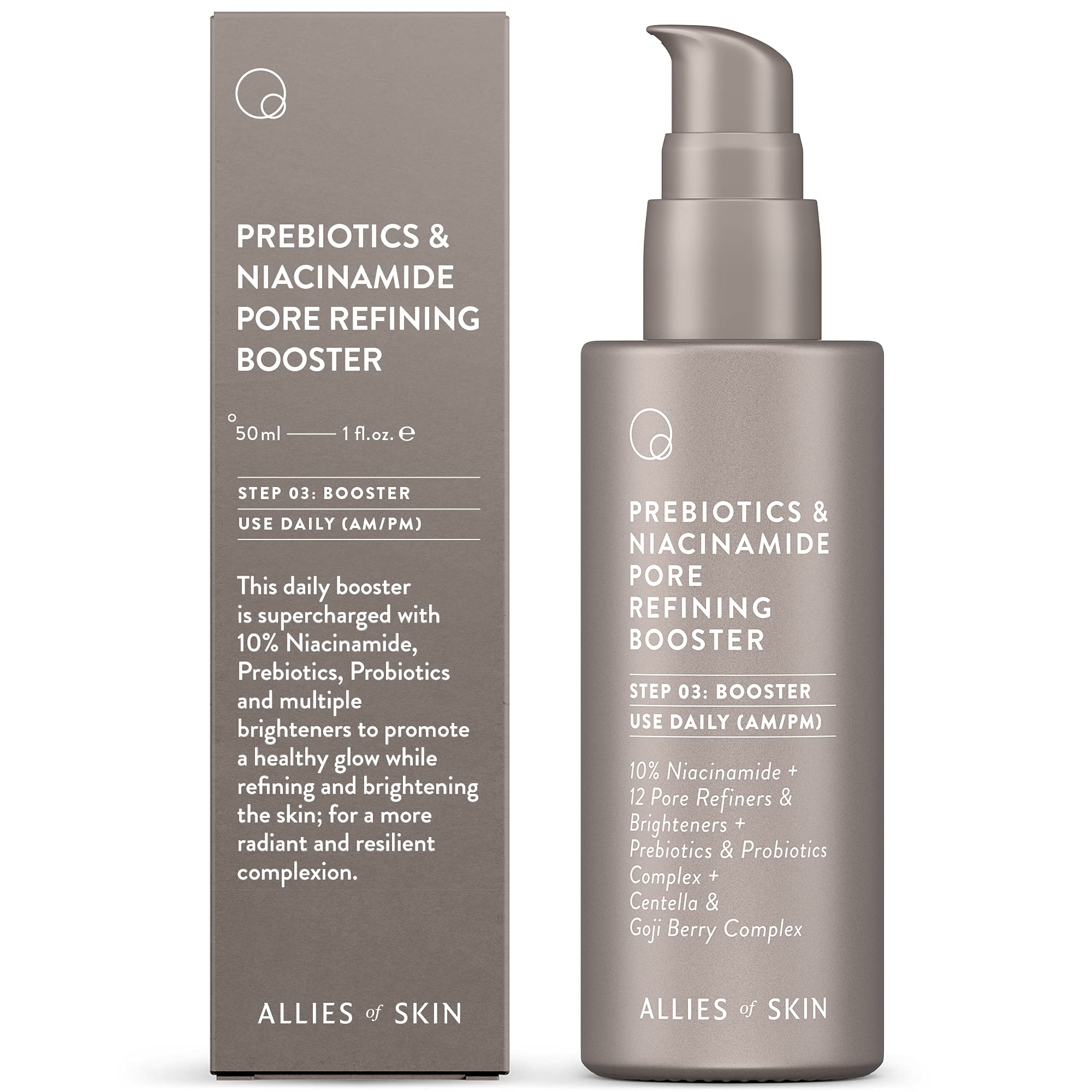 Allies of Skin Prebiotics & Niacinamide Pore Refining Booster | Minimize the Appearance of Pores with Goji Berry & Probiotics Complex | Calm Redness and Treat Blemish Prone Dull Skin | 1.7 fl oz