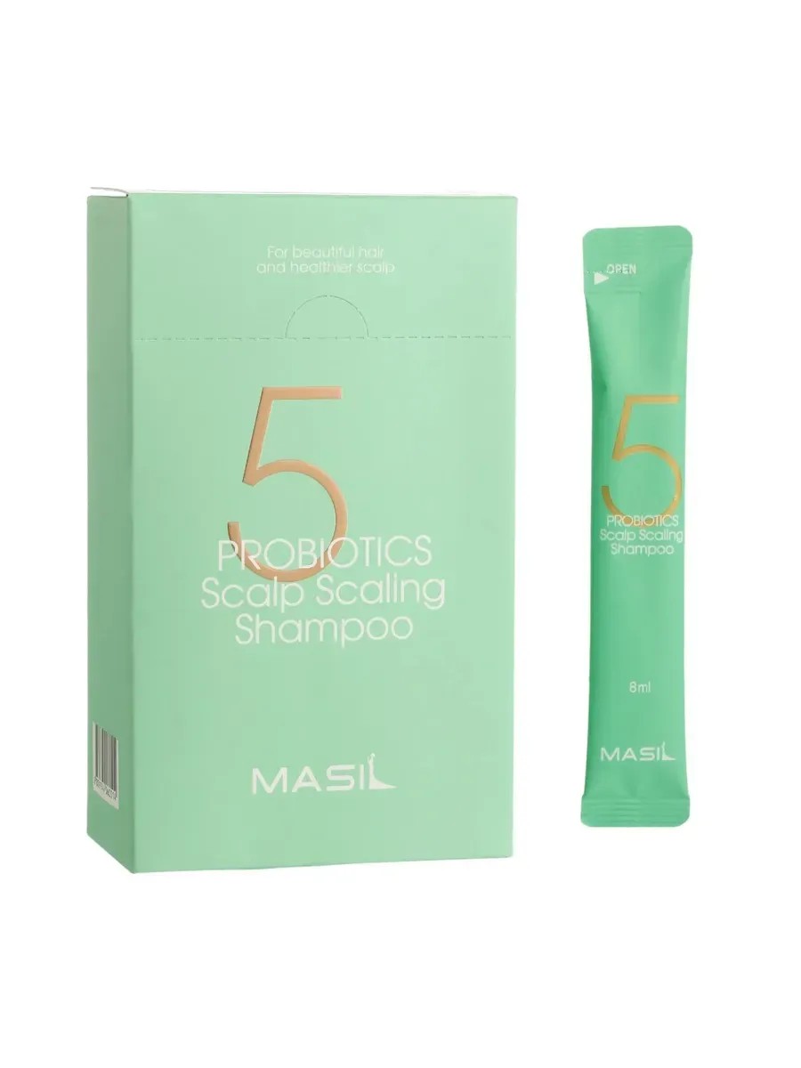 AllMasil. 5 Probiotics Scalp Scaling Shampoo, 8 ml * 20 pcs. This deep-cleansing shampoo normalizes the scalp's hydrolipid balance, eliminating dryness and unwanted oiliness. It relieves irritation and flaking, leaving skin and hair feeling fresh for a long time, and restores dry and damaged hair. Directions: Apply the desired amount to damp hair and massage gently for 2-3 minutes. Rinse with warm water.