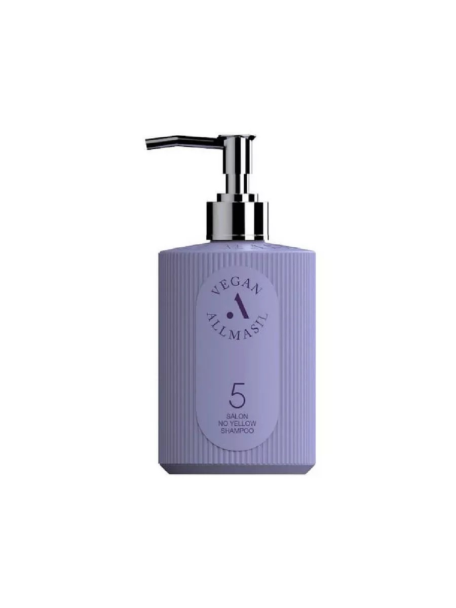 Allmasil Salon No Yellow Shampoo, 500 ml. This toning shampoo for bleached hair prevents yellowing and pigment fading, preserving and maintaining the color of color-treated hair. It makes hair smoother and more manageable, eliminates breakage and tangles, and restores healthy shine. This shampoo has a thick, purple-tinted gel texture. It doesn't stain your hands or scalp and leaves no dark marks. Directions: Apply the required amount to damp hair and massage gently for 2-3 minutes. Rinse with warm water.