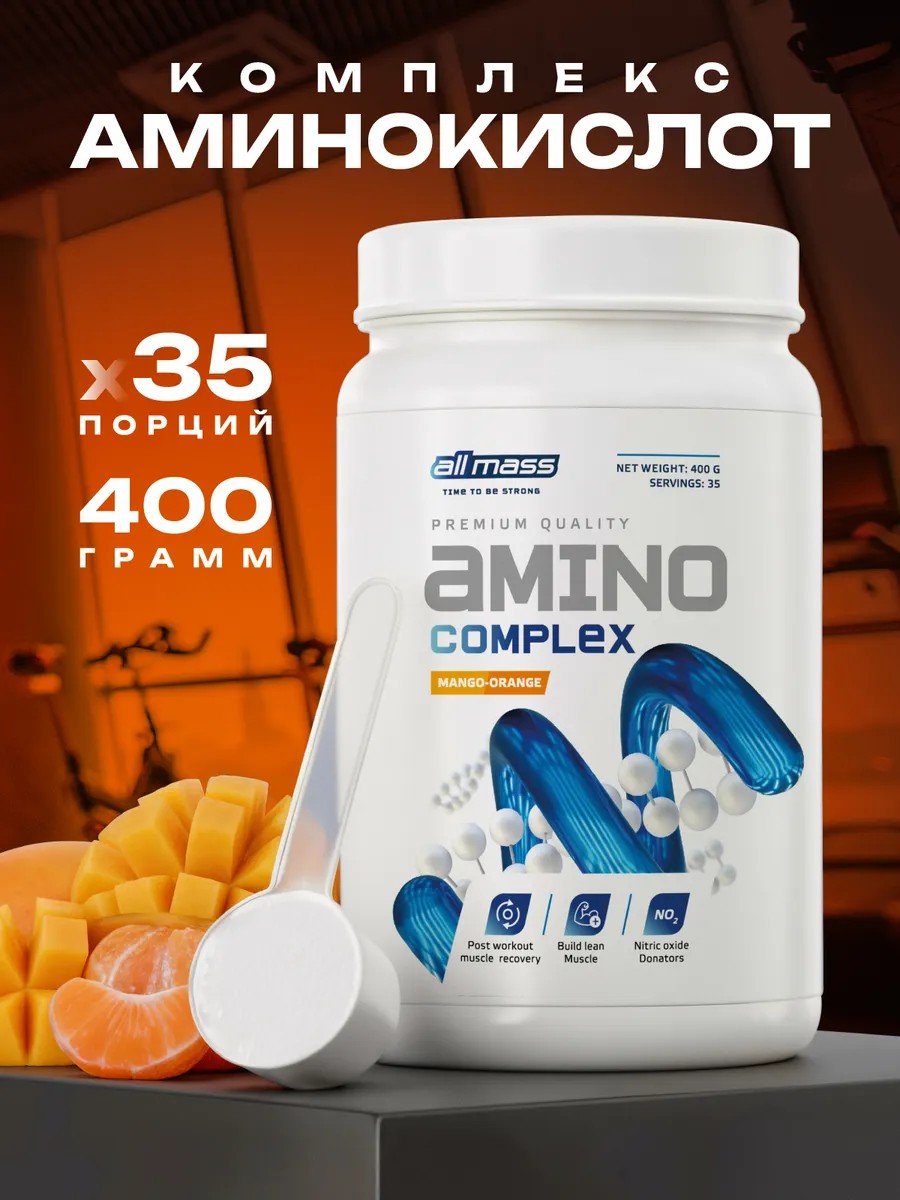 Allmass AMINO COMPLEX 400 грамм- сбалансированный комплекс на основе гидролизата сывороточного белка, каждая порция которого содержит все аминокислоты, необходимые для полноценного развития и постоянного прогресса в тренировках. Для повышения эффективности и ускорения восстановления в состав комплекса входят аминокислоты в свободной форме: BCAA, L-глютамин, L-аргинин, таурин и другие. Основные преимущества: повышение выносливости, ускорение мышечного роста и восстановления, защита организма от катаболического разрушения. Аминокомплекс в порошке содержит незаменимые ЕАА аминокислоты, включая BCAA, в наиболее эффективном соотношении 2:1:1. Незаменимые аминокислоты EAA не синтезируются организмом в достаточном количестве и должны поступать извне. Спортивная добавка предназначена для повышения мышечной выносливости, улучшения и ускорения процесса восстановления. При регулярном применении исчезают симптомы перетренированности, возникающие после физических нагрузок. Аминокислотный комплекс быстро усваивается, насыщая мышцы питательными веществами, укрепляя мышечные волокна и увеличивая мышечную массу. На 20% наш организм состоит из белков, которые участвуют практически во всех биохимических процессах. Большинство клеток и тканей человеческого организма состоят из аминокислот, которые играют важную роль в транспортировке и хранении питательных веществ. Однако человек может получать из пищи лишь некоторые аминокислоты, необходимые ему для поддержания жизни. Сроки и частота приема аминокислот в качестве добавок зависят от их назначения. Если они принимаются как вспомогательное средство для увеличения мышечной массы, то их принимают до и после тренировки или в первой половине дня. Также их следует принимать чаще, если вы находитесь на диете или сушке. Аминокислоты порошок как витамины и питательные вещества- важны для здоровья и физической формы как женщин так и мужчин любого возраста. Их недостаток крайне негативно сказывается на здоровье.