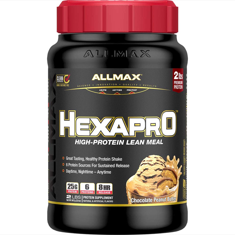 ALLMAX HEXAPRO Chocolate Peanut Butter - 2 lb - 25 Grams of Protein Per Serving - 8-Hour Sustained Release - Zero Sugar - 21 Servings Chocolate Peanut Butter 2 Pound (Pack of 1)