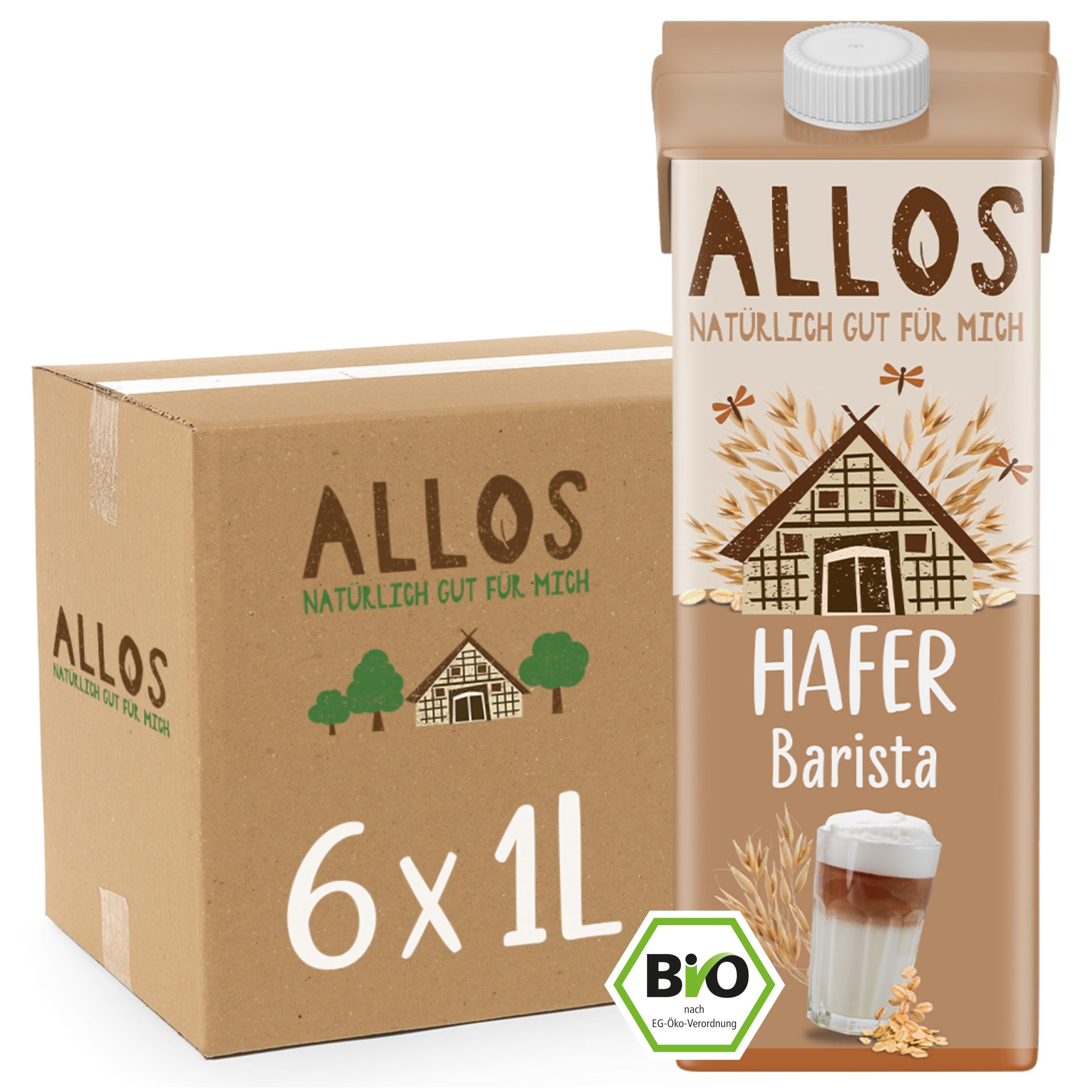 Allos Bio Haferdrink Barista | Milchalternative aus Hafer | Drink auf Pflanzenbasis | Hafer Drink | schäumbar | perfekt für Kaffee | Hafer | veganer Drink | laktosefrei | 1 Liter (6 Stück)