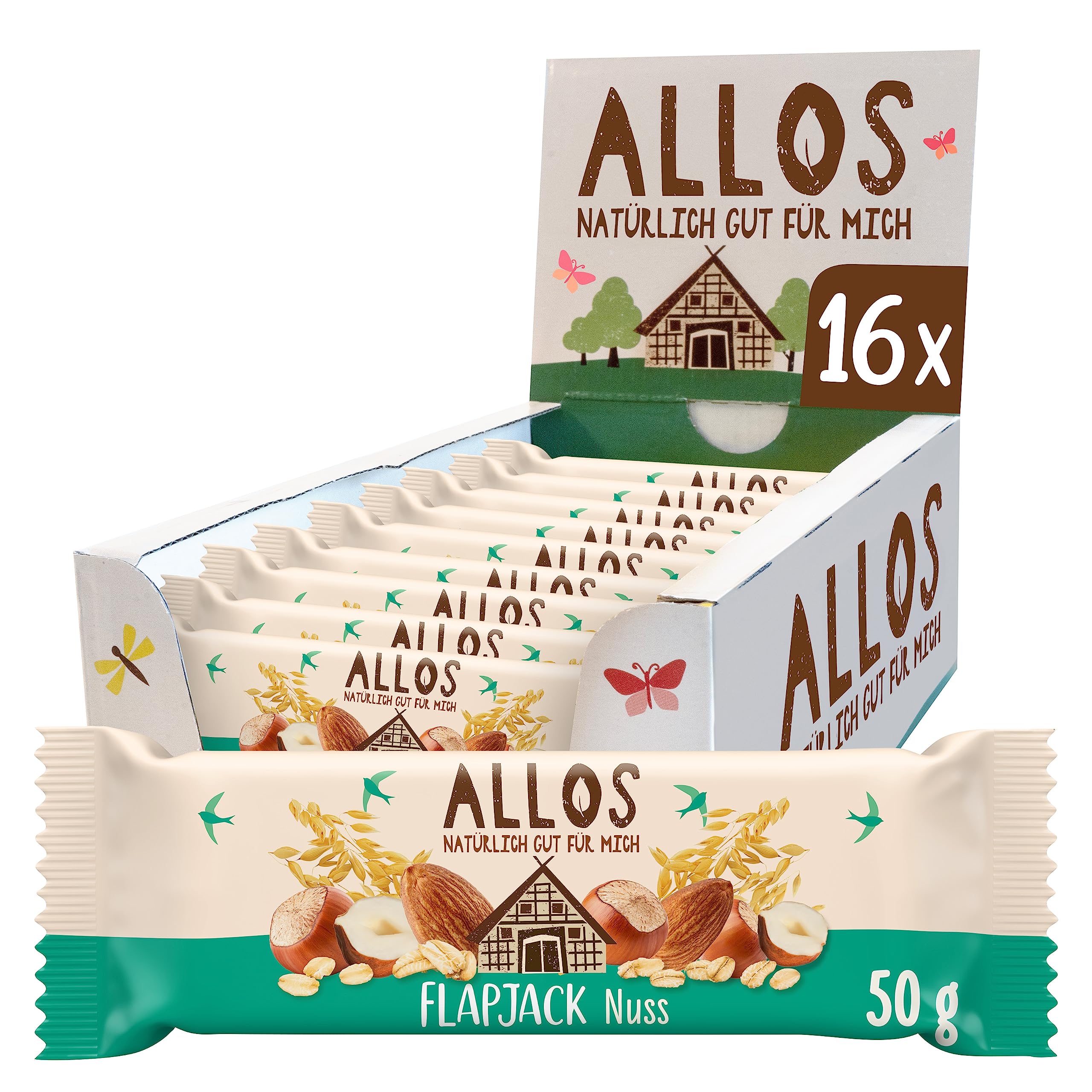 Allos Hafer Flapjack Nuss, Bio Riegel, Energieriegel, Sportriegel, 16 x 50g