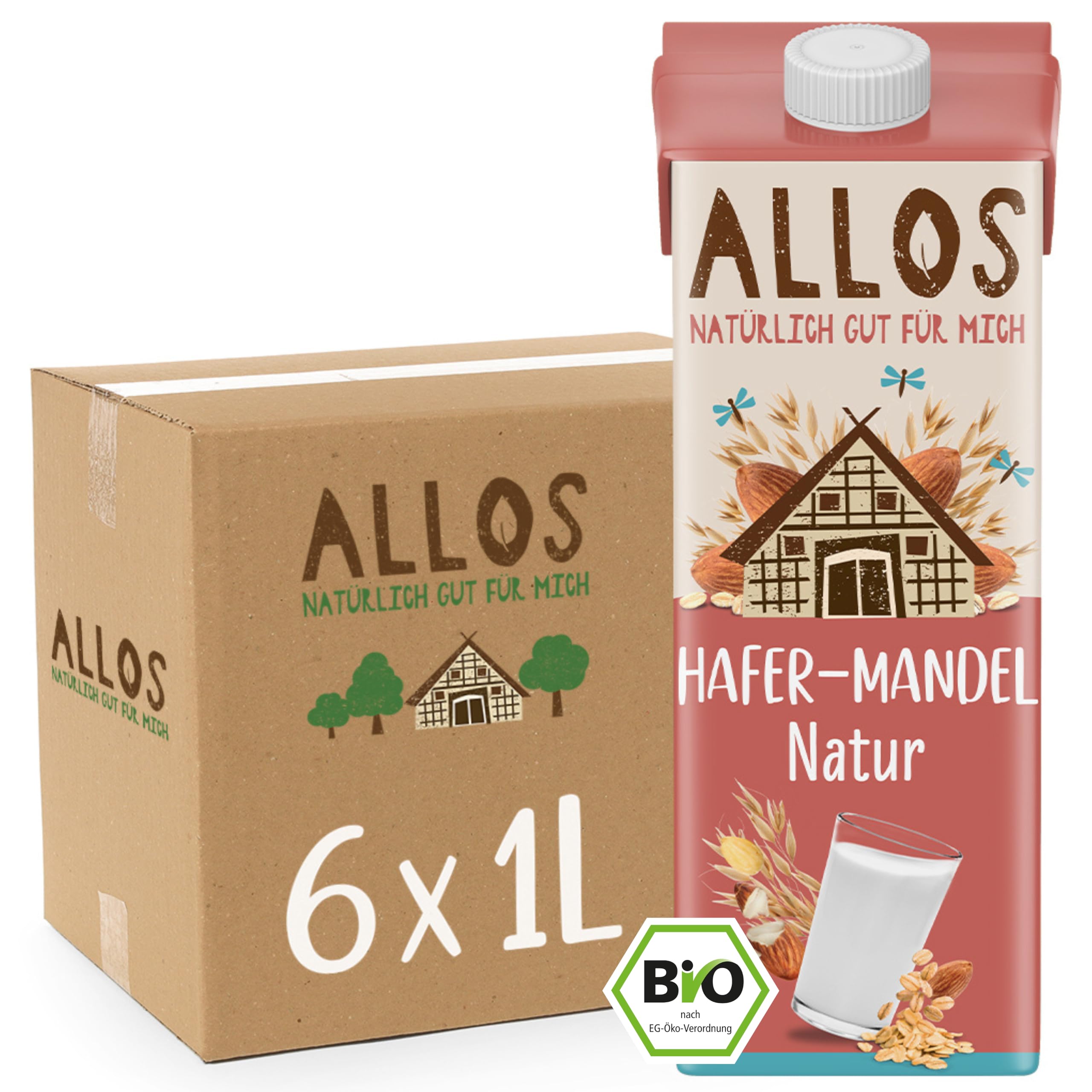 Allos Bio Hafer Mandeldrink ungesüßt | Milchalternative aus Hafer | Haferdrink | Drink auf pflanzlicher Basis | ohne zugesetzten Zucker | Hafer | Mandel | vegan | laktosefrei | 1 Liter (6 Stück)