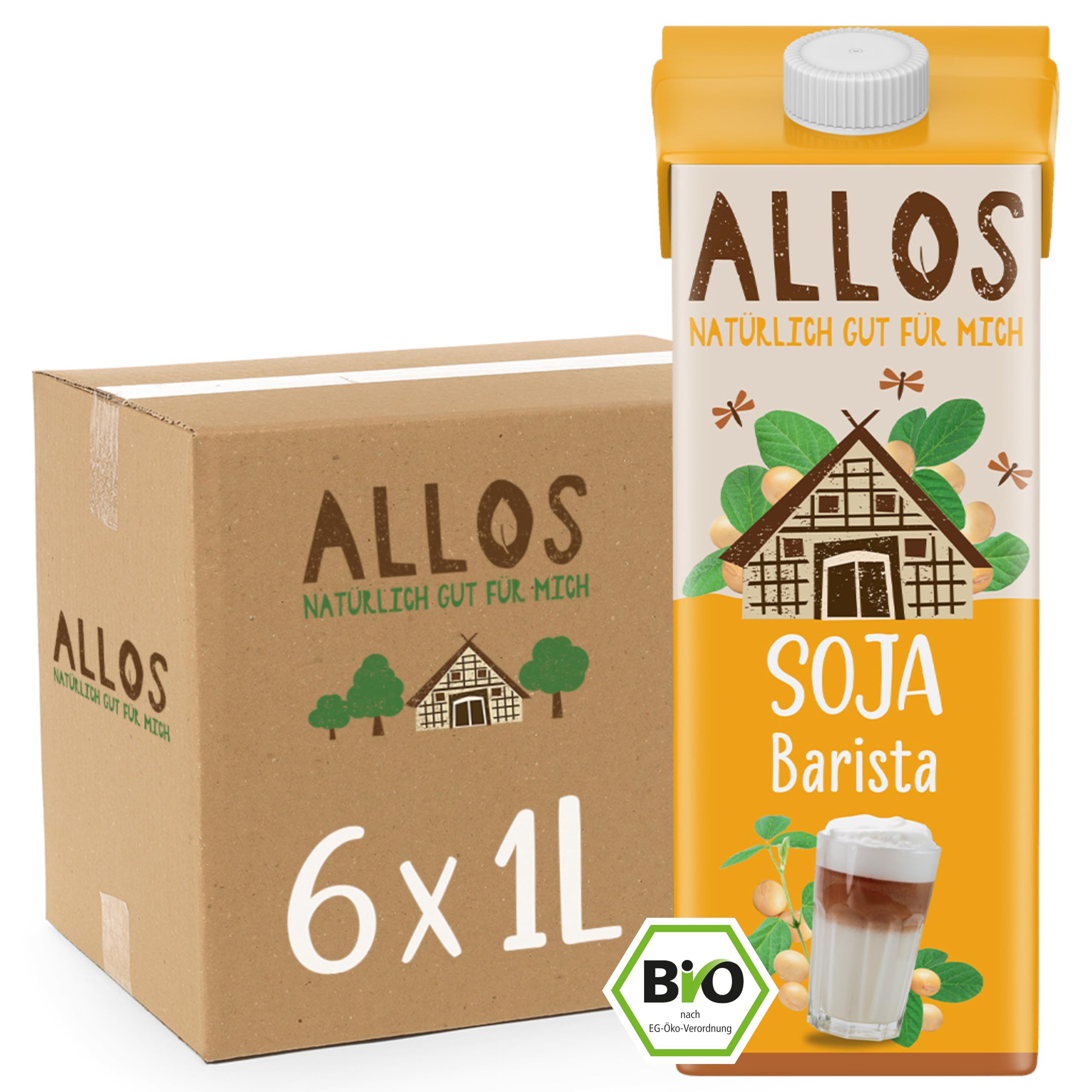 Allos Bio Sojadrink Barista | Milchalternative aus Soja | Soja Drink | Drink auf Pflanzenbasis | veganer Drink | schäumbar | perfekt für Kaffee | laktosefrei | 1 Liter (6 Stück)