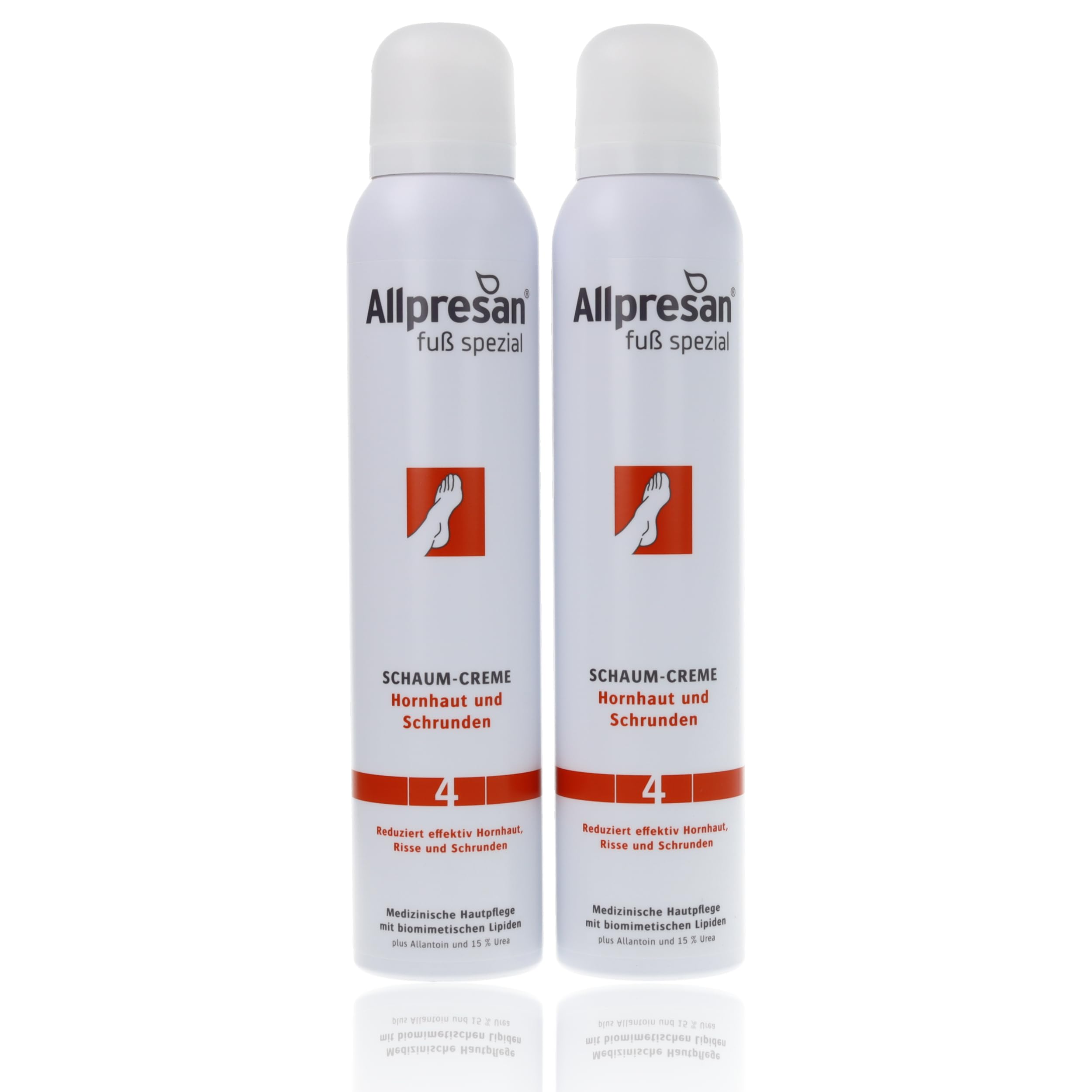 Allpresan Special Foot Foam Cream No. 4 for Calluses and Cracks Our feet carry us throughout our lives and deserve effective care. Allpresan Special Foot Cream offers a wide range of products for everyday and specific foot problems and stands for solution-oriented foot care. BarrioExpert technology forms a breathable protective mesh on the skin, inspired by the principles of modern textiles. Allpresan Special Foot Foam Cream No. 4 provides specially tailored care for calloused skin and acts in a targeted way against superficial keratinization and cracks. The ease of use of the rich, fast-absorbing foam cream transforms foot care products into true pampering favorites. Product Details: Foam cream for calluses and cracks on the feet. - For the daily care of calloused feet. Acts in a targeted way against superficial keratinization and cracks. Forms a breathable protective barrier. - Clothing can be put back on immediately after application. No risk of slipping. Fragrance-free, dye-free, and preservative-free. How to use: Ideally, Allpresan No. 4 Special Foot Foam Cream should be applied twice a day (morning and evening) or as needed to calloused areas of the skin to optimally nourish the skin on your feet. Thanks to Allpresan's foaming cream technology, it is particularly economical – a small amount is sufficient for large areas of skin. Allpresan No. 4 Special Foot Foam Cream absorbs quickly and is non-greasy, so you can put on your clothes immediately. The product is for external use only. Please shake the foam cream container well before use and hold it upright when removing it. Before first use, you must break the tamper-evident seal on the back of the foam applicator. SAFETY WARNING Container is pressurized: may explode when heated. Keep away from heat, hot surfaces, sparks, open flames, and other ignition sources. No smokingAllpresan Foot Special N 4 Crème anti-callosités et crevasses – Réduit efficacement les callosités, les fissures et les crevasses 200 ml (2)DESCRIPTION DU PRODUIT DESCRIPTION DU PRODUIT Allpresan Crème mousse spéciale pour pieds n 4 contre les callosités et les crevasses Nos pieds nous portent tout au long de la vie et méritent des soins efficaces. Allpresan Fuß spezial offre une large gamme pour les problèmes quotidiens et spécifiques des pieds et est synonyme de soins des pieds orientés vers les solutions. La technologie BarrioExpert forme sur la peau un filet de protection respirant inspiré du principe d'action des textiles modernes. Ainsi, la crème mousse spéciale pour pieds Allpresan n 4 offre un soin spécialement adapté aux besoins de la peau calleuse et agit de manière ciblée contre les kératinisations superficielles et les fissures. Le confort d'utilisation de la crème moussante riche et à absorption rapide transforme les manchons de soin de véritables fans de soins. Détails du produit : Crème moussante pour callosités et crevasses sur les pieds. - Pour le soin quotidien de la peau des pieds cornée. Agit de manière ciblée contre les kératinisations superficielles et les fissures. Forme un filet de protection respirant. - Les textiles peuvent être remis immédiatement après l'application. Aucun risque de glissement. Sans parfum, sans colorants ni conservateurs. Comment utiliser: Idéalement, la crème mousse spéciale pour pieds Allpresan n 4 doit être appliquée 2 fois par jour (matin et soir) ou selon les besoins sur les zones callisées de la peau afin de nourrir la peau des pieds de manière optimale. Grâce à la technologie de crème moussante Allpresan elle est particulièrement économique – une petite quantité suffit déjà pour les grandes zones de la peau. La crème mousse spéciale pour pieds Allpresan n 4 pénètre rapidement et ne graisse pas, de sorte que les vêtements peuvent être directement enfilés. Le produit est uniquement destiné à un usage externe. Veuillez bien secouer la boîte de crème mousse avant utilisation et la maintenir droite lorsque vous la retirez. Avant la première utilisation, vous devez déverrouiller le sceau d'originalité à l'arrière de la tête en mousse. AVERTISSEMENT DE SÉCURITÉ Le récipient est sous pression : peut exploser lorsqu'il est chauffé. Tenir à l'écart de la chaleur, des surfaces chaudes, des étincelles, des flammes nues et d'autres sources d'inflammation. Ne pas fumerContenu de la livraison : 2 x 200 ml de crème mousse Allpresan Foot spéciale n 4 Contre les callosités et les crevasses Sans parfum, sans colorants ni conservateurs Contient 15 d'urée. Secouer, maintenir en place, faire mousser : l'application correcte offre une expérience de crème moussante complète jusqu'à la dernière tache appliquer 2 fois par jour sur les zones de peau cornées. La crème moussante pénètre très rapidement sans laisser de film gras désagréable, elle est très économique et peut être appliquée sur la peau presque sans contact. Soin quotidien de la peau calleuse : la formule légère à base de la technologie BarrioExpert forme un filet de protection respirant qui renforce la fonction protectrice naturelle de la peau. La crème moussante peut réduire naturellement les callosités et les frisottis des pieds et prévient la formation de nouvelles callosités.