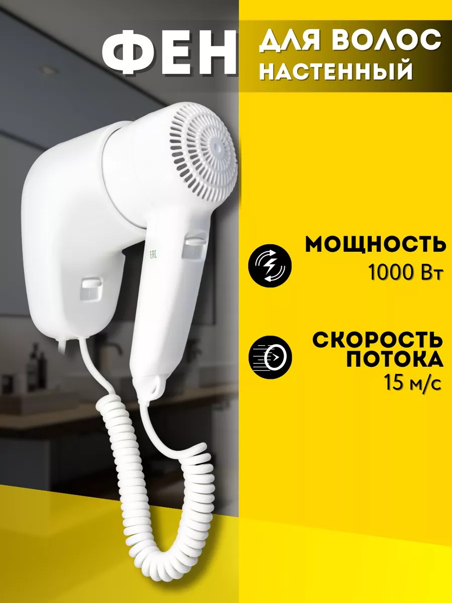 ALLPUFF Фен для волос настенный 1.0 кВт белый, А00ФДВ105