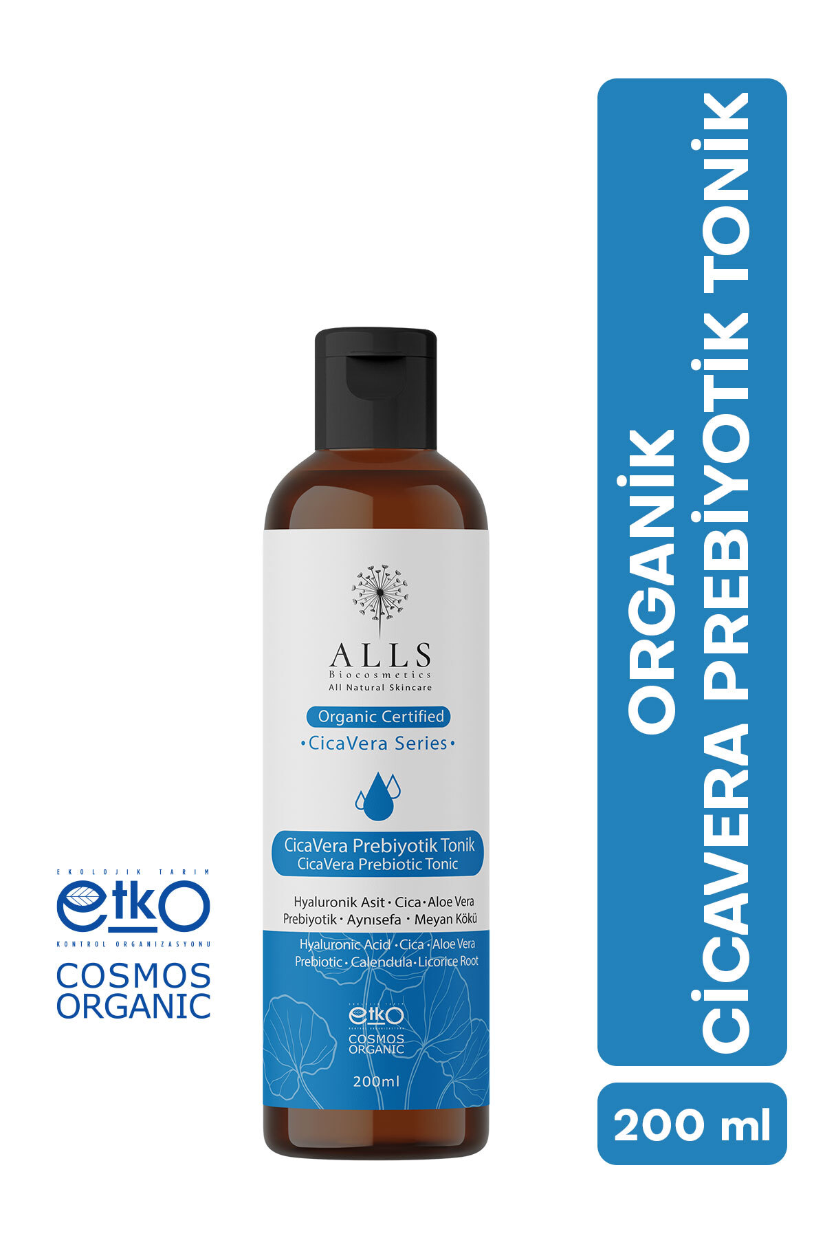 Product Name:Alls Biocosmetics CicaVera Prebiotic Tonic 200 mlProduct Brand:Alls BiocosmeticsProduct Size:200mlSummary Information:Organic certified tonic that helps reduce the appearance of poresProduct Benefits:It helps cleanse the skin of oil, dirt and make-up residues and reduce the appearance of pores.It is a prebiotic tonic with brightening and moisturizing effects.Developed for sensitive skin.It is suitable for use by all skin types.It helps moisturize the skin after cleansing and helps reduce the appearance of pores.It is suitable for daily use.ETKO Organichas the certificate.To get effective results, it is recommended to use it together with Alls Biocosmetics CicaVera Prebiotic Cleansing Gel.Suitable Skin Type:Suitable for use by all skin typesUsage:Apply to cleansed skin in the morning and or evening.Apply tonic by massaging with your fingertips or using a cotton ball.Avoid contact with eyes.Product Composition:Aqua, Aloe Barbadensis Leaf Juice , Propanediol, Sodium PCA, Sodium Citrate, Inulin, Pentylene Glycol, Zinc Gluconate, Gluconolactone, Glycerin, Levulinic Acid, Phenylpropanol, Sodium Levulinate, Fructose, Centella Asiatica Extract , Glycyrrhiza Glabra Root Extract , Calendula Officinalis Flower Extract , Sodium Hyaluronate, Sodium Benzoate, Potassium Sorbate, Citric Acid, Benzyl Alcohol, Dehydroacetic Acid.25.53 Organic Origin99.99 Natural OriginComes from organic farming.From Organic Agriculture