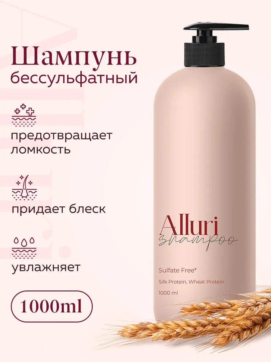 Подарите своим волосам профессиональную заботу с деликатным протеиновым шампунем "Alluri" (1000 мл). Наш бессульфатный шампунь для волос женский профессиональный создан специально для бережного ухода за окрашенными, кудрявыми и вьющимися волосами. Без SLS и SLES, он обеспечивает мягкое ежедневное очищение, эффективно удаляя загрязнения, излишки себума и остатки стайлинга, не повреждая липидный защитный барьер кожи головы.