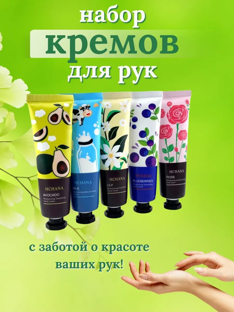 | Полное наименование товара | Набор кремов для рук 5 шт с ароматами авокадо, молока, лилии, черники и розы — увлажнение, питание и защита кожи |