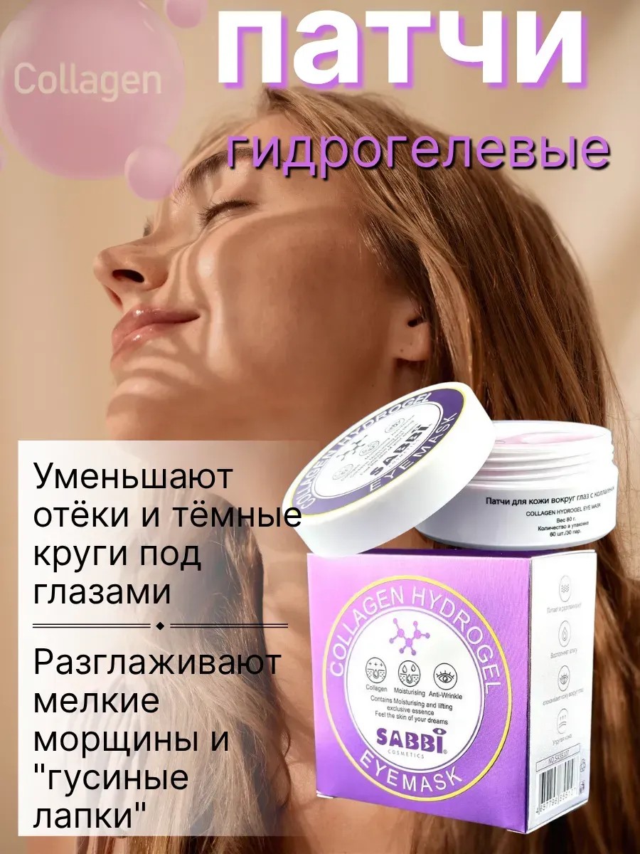 | Полное наименование товара | Гидрогелевые патчи для кожи вокруг глаз с коллагеном, омолаживающие и лифтинг-эффект, 60 шт, от морщин, отеков и темных кругов, для всех типов кожи |
