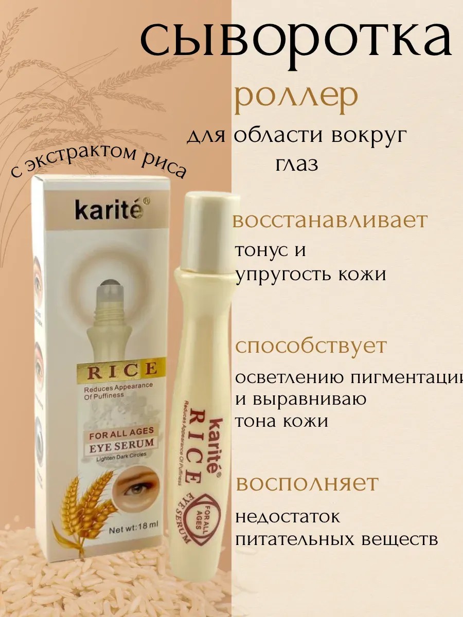 Сыворотка-роллер для кожи вокруг глаз с экстрактом риса, ниацинамидом, алоэ и аллантоином — комплексный уход для свежего и сияющего взгляда.