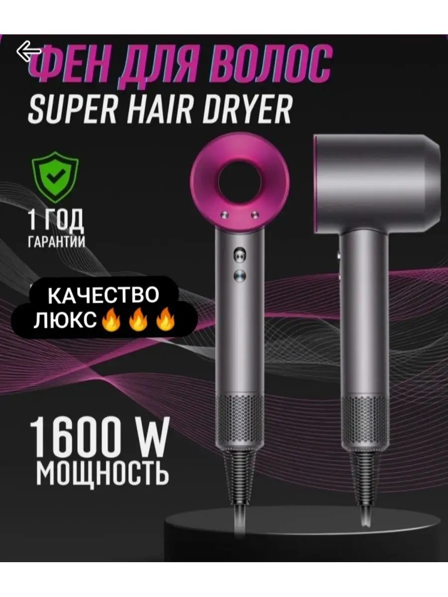 Профессиональный фен с насадками SUPER HAIR DRYER для ценителей скорости, качества и стиля! Универсальный электрофен для укладки, сушки и завивки с цифровым управлением самостоятельно регулирует температуру воздушного потока и силу. Сохраняет здоровье волос, создает практически мгновенную сушку. Щетки с холодным воздухом с комплектом из 5 насадок. Подобные мадели известных брендов фены с ионизацией типа популярного стайлера dyson, daison, дайсон hair supersonic, rowenta фен-щетка ровента, xiaomi, philips, babyliss бебилисс в 10 раза дороже, а эффект тот же! Стайлер расческа идеальная замена щипцам 3 в 1 и любому диффузору с ионизатором. Фен брашинг с крутящейся вращающейся щеткой компактный и вместительный, подойдет как складная дорожная модель, для бассейна и дома. Щипцы диффузер ионизатор для выпрямления непослушных волос как подарок любимой маме сестре подруге коллеге бабушке девушке на день рождения влюбленных новый год юбилей 1 сентября. ГАРАНТИЯ 1 год на мультистайлер для волос.